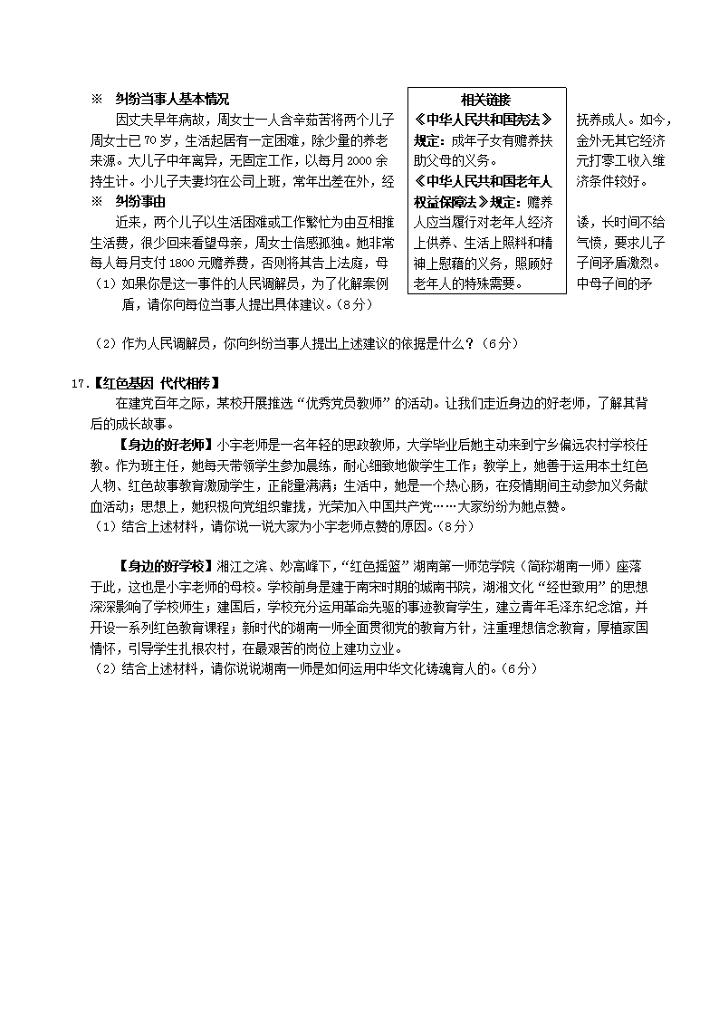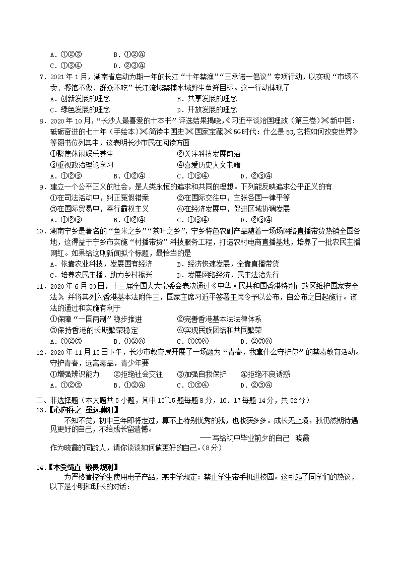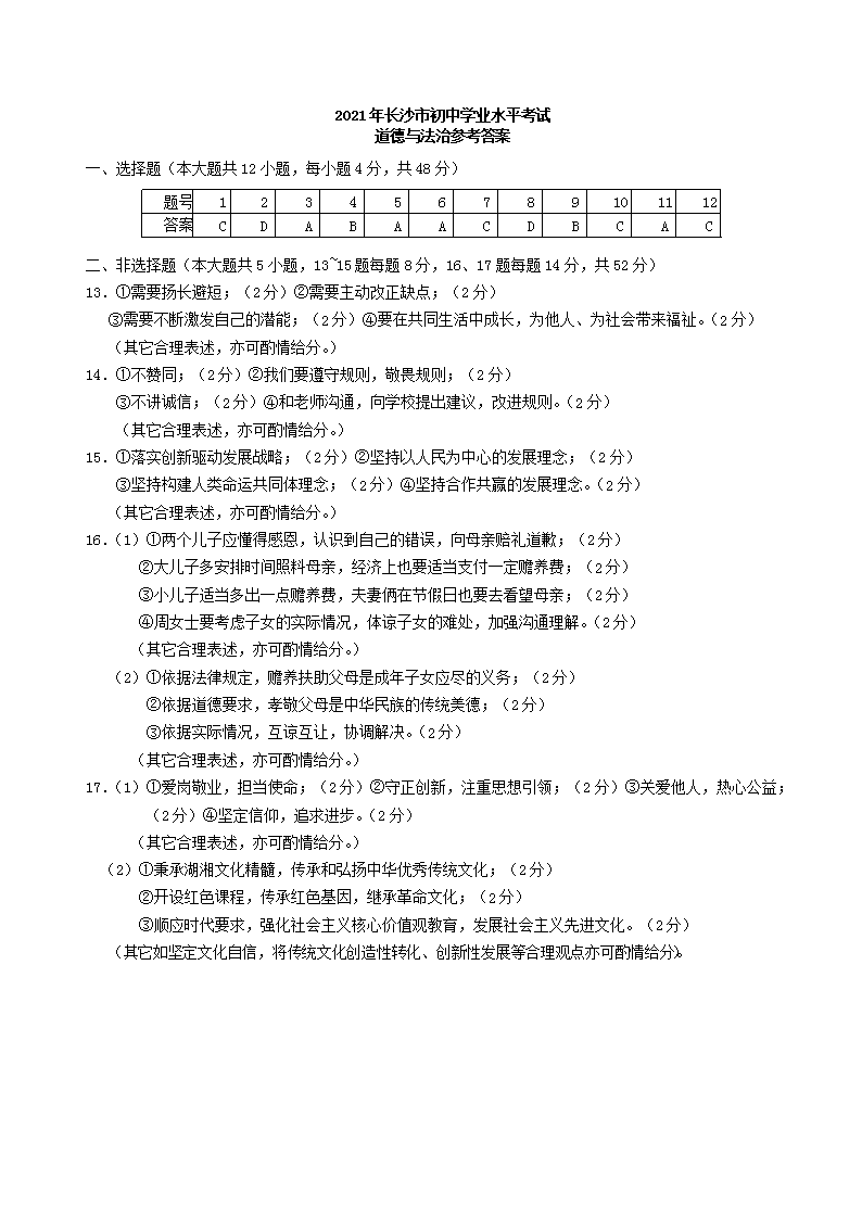 【文档名称】 2021年湖南省长沙市中考道德与法治真题及答案(Word版).doc