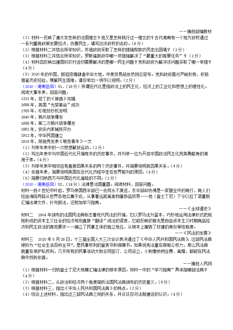 【文档名称】 2020年湖南省岳阳市中考历史真题及答案(Word版).doc