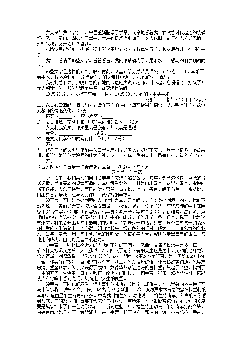 【文档预览】 无忧考网整理发布2013年黑龙江绥化市中考语文真题及答案(Word版),前五页预览如下: