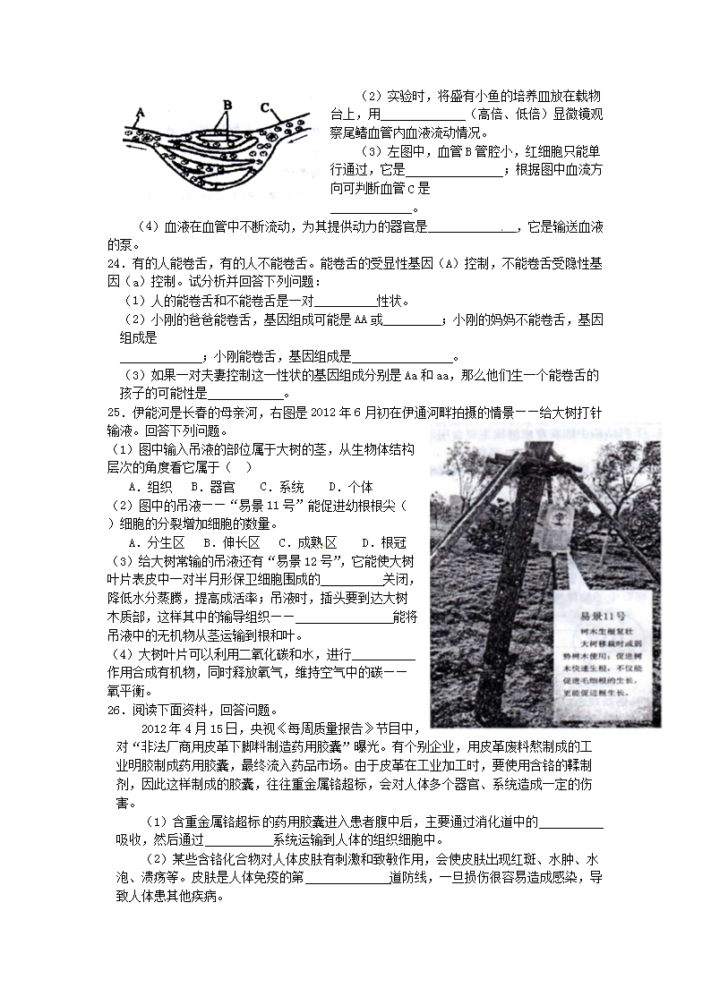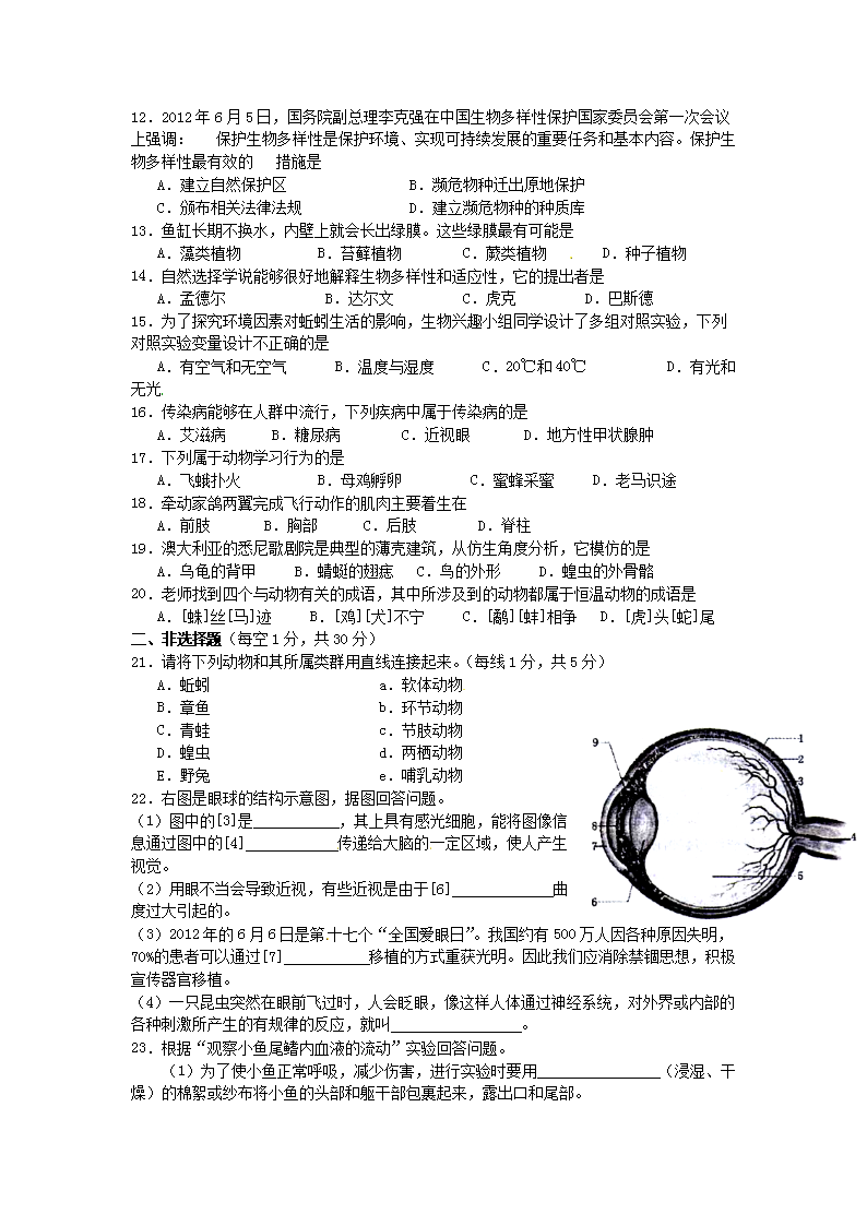 【文档名称】 2012年吉林辽源中考生物真题及答案(Word版).doc