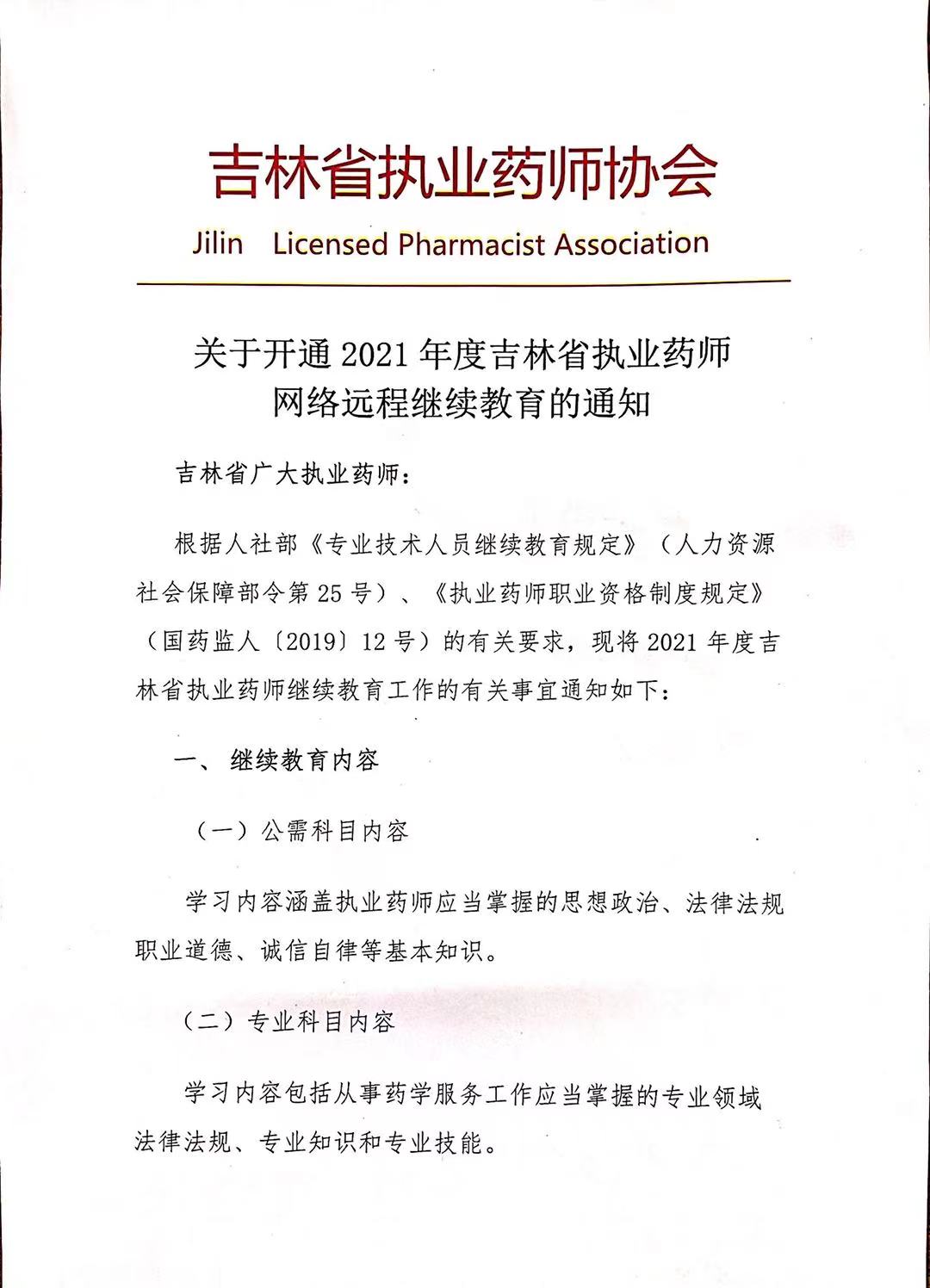 从吉林省执业药师协会获悉,2021年吉林省药师网络远程继续教育的通知已公布,具体详情如下: