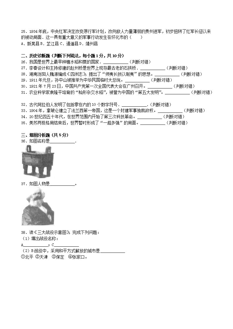 【文档名称】 2016年湖南省怀化市中考历史真题及答案(Word版).doc