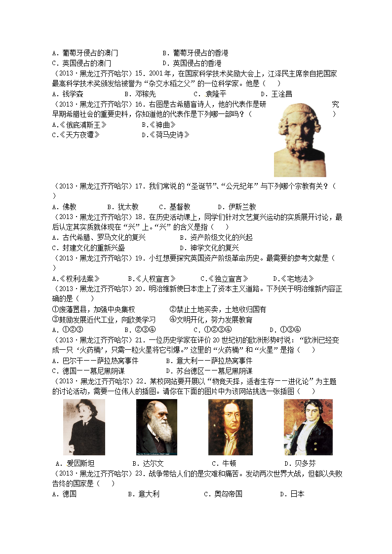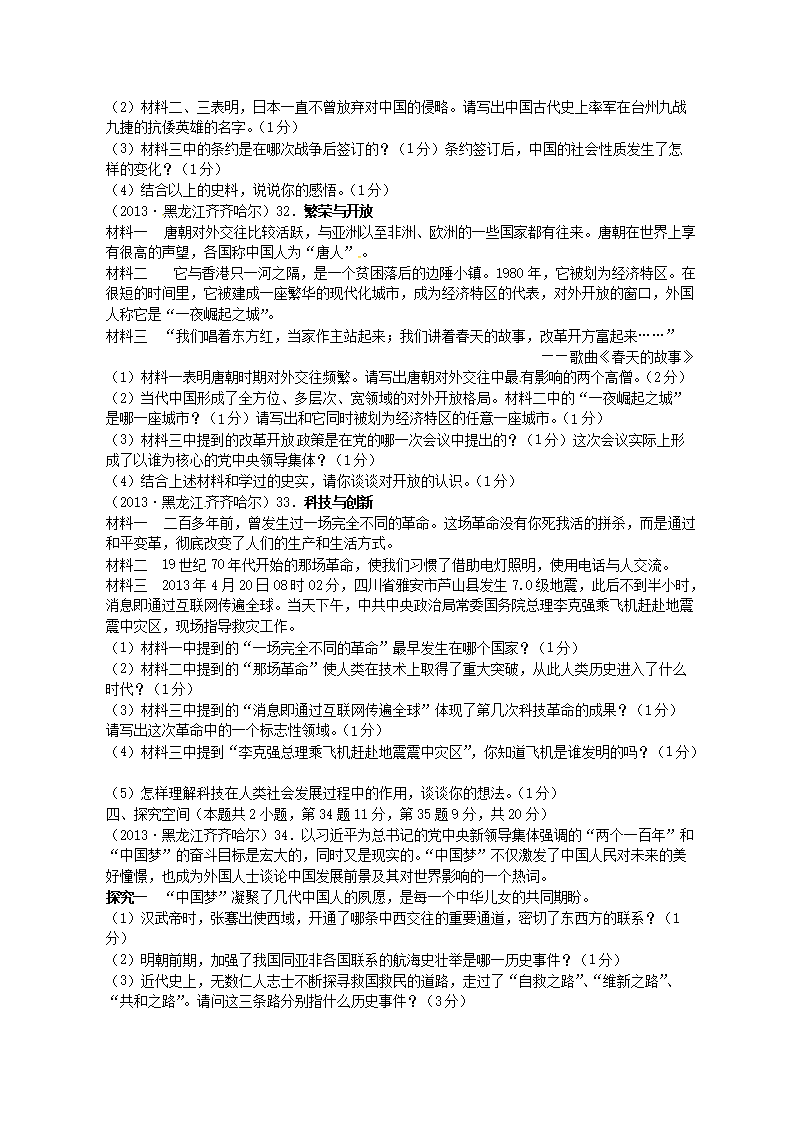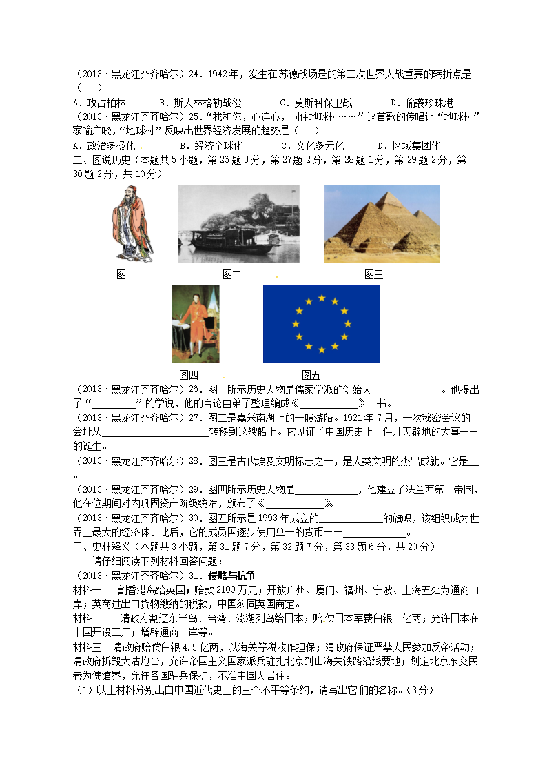 【文档名称】 2013年黑龙江齐齐哈尔中考历史真题及答案(Word版).doc