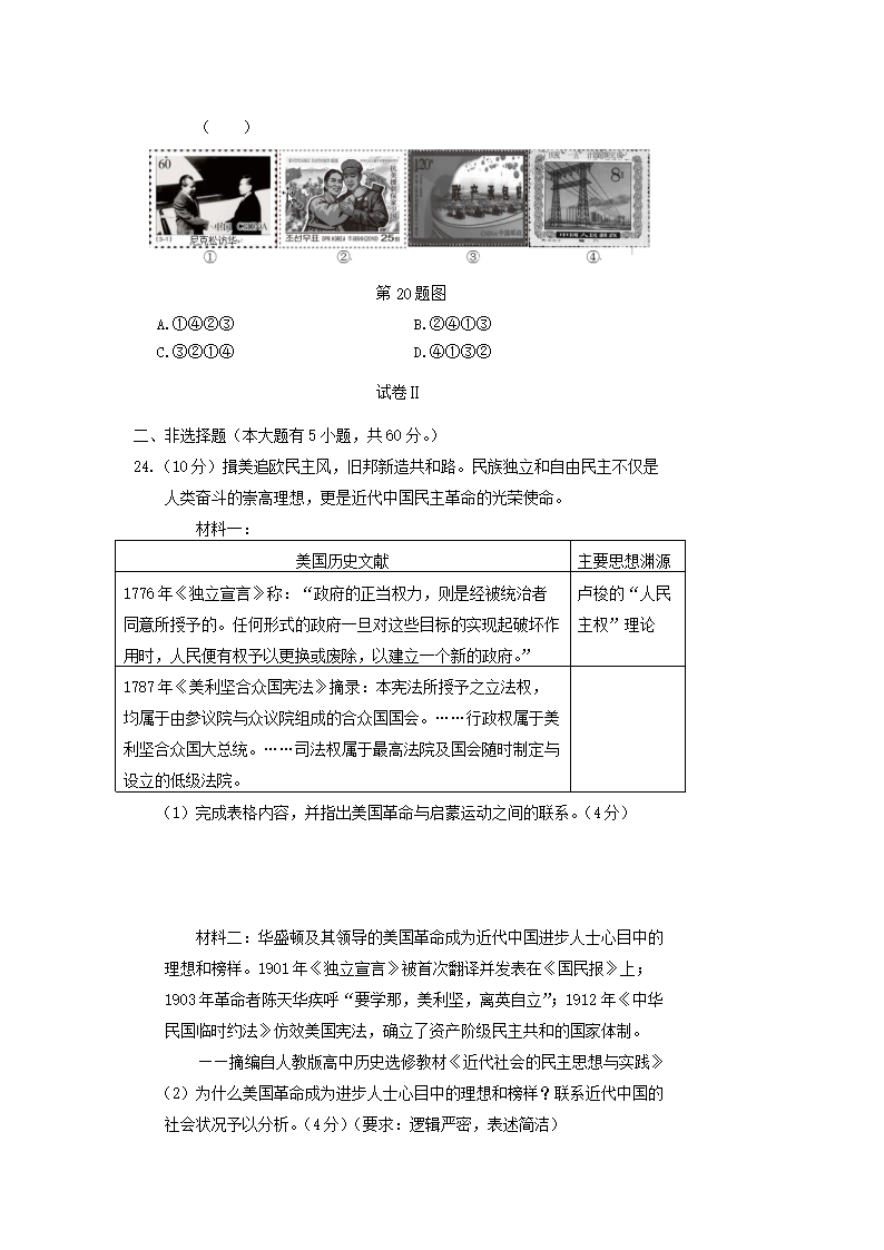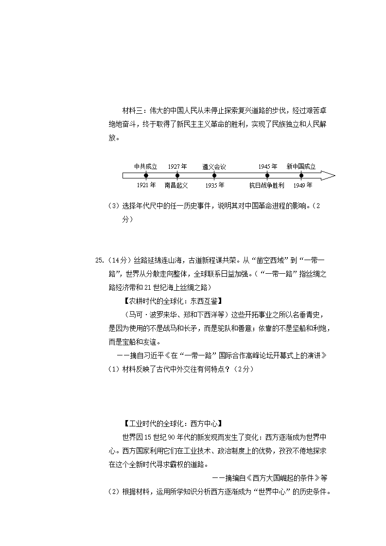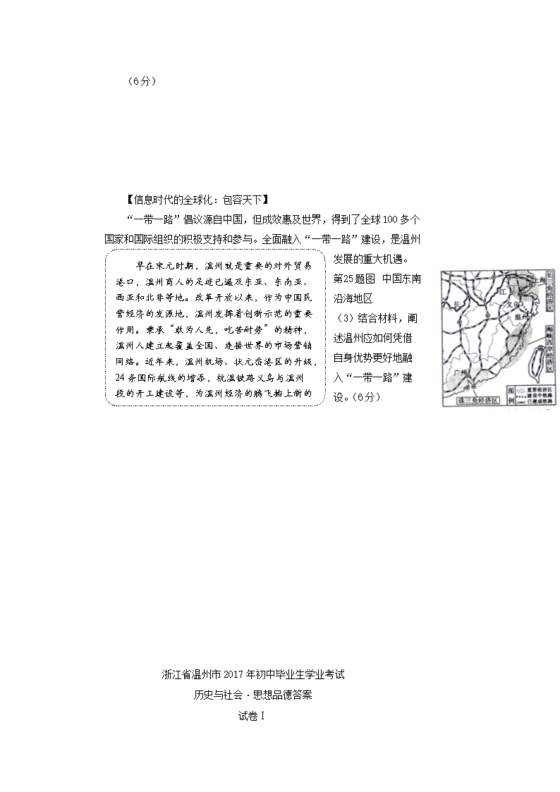 【文档名称】 2017浙江省温州市中考历史真题及答案(Word版).doc