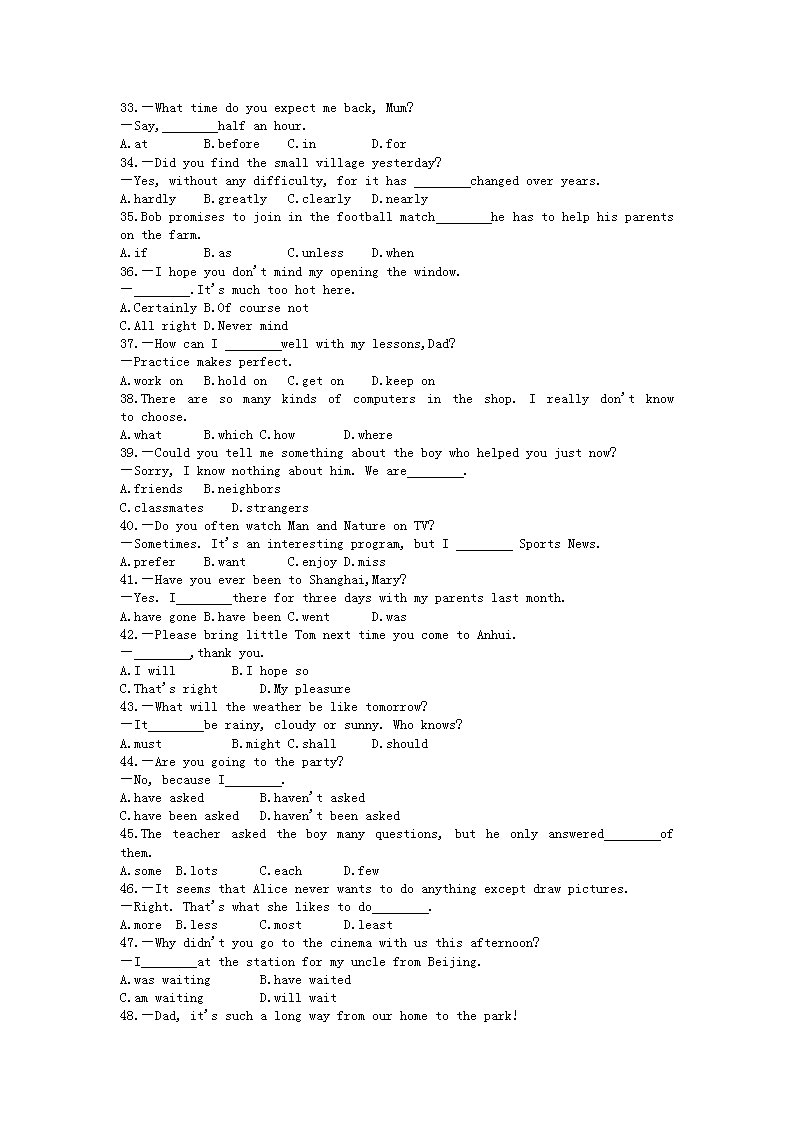 【文档名称】 2010年安徽淮北中考英语真题及答案(Word版).doc