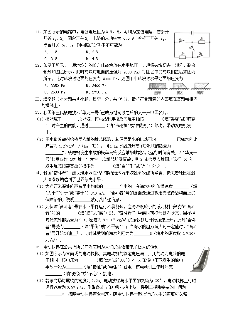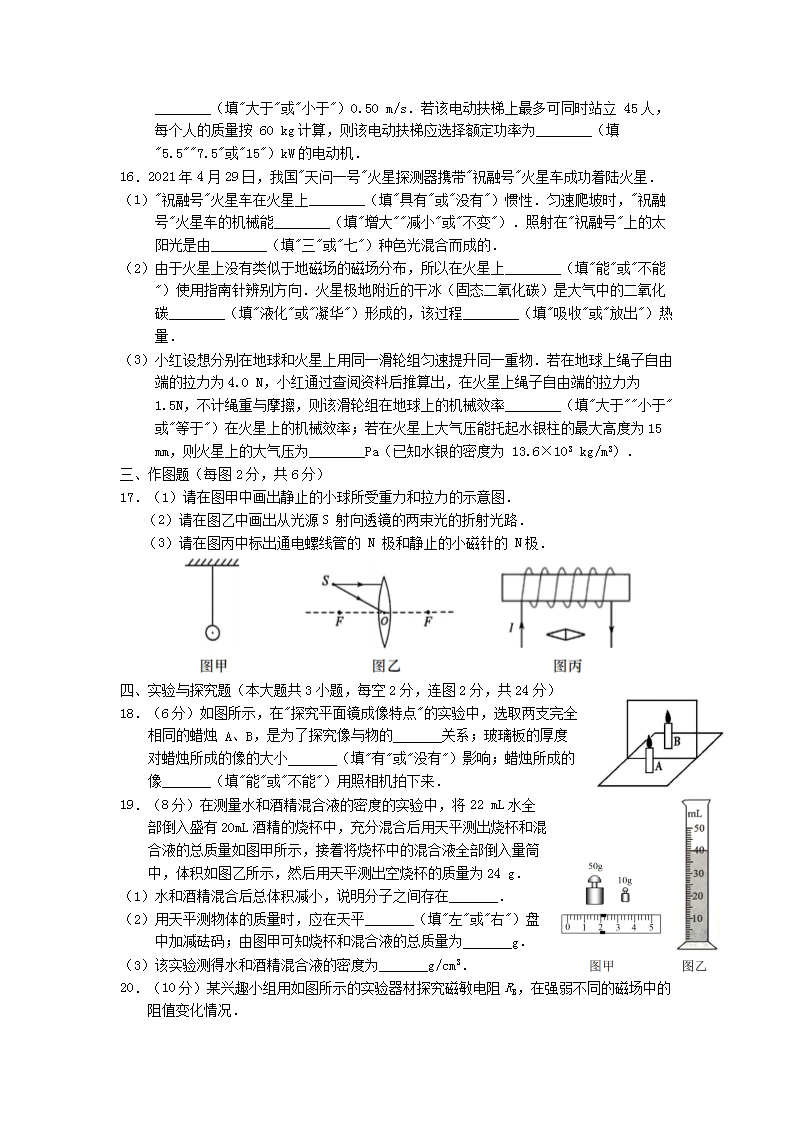 【文档名称】 2021年新疆兵团中考物理真题及答案(Word版).doc