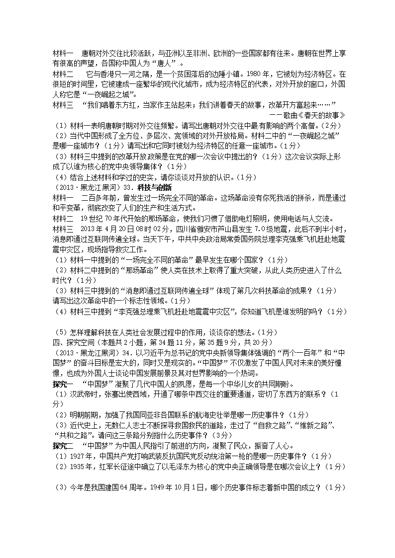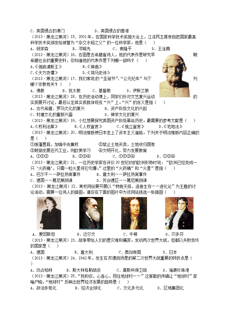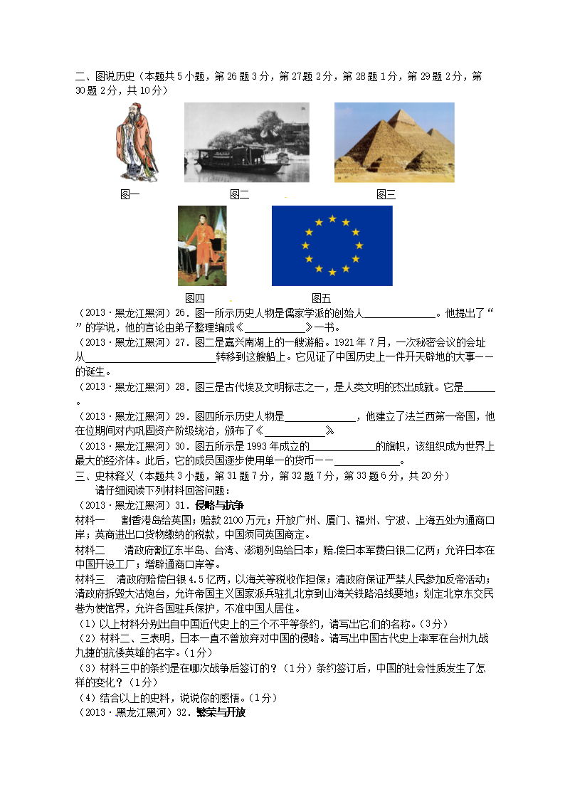 【文档名称】 2013年黑龙江黑河中考历史真题及答案(Word版).doc