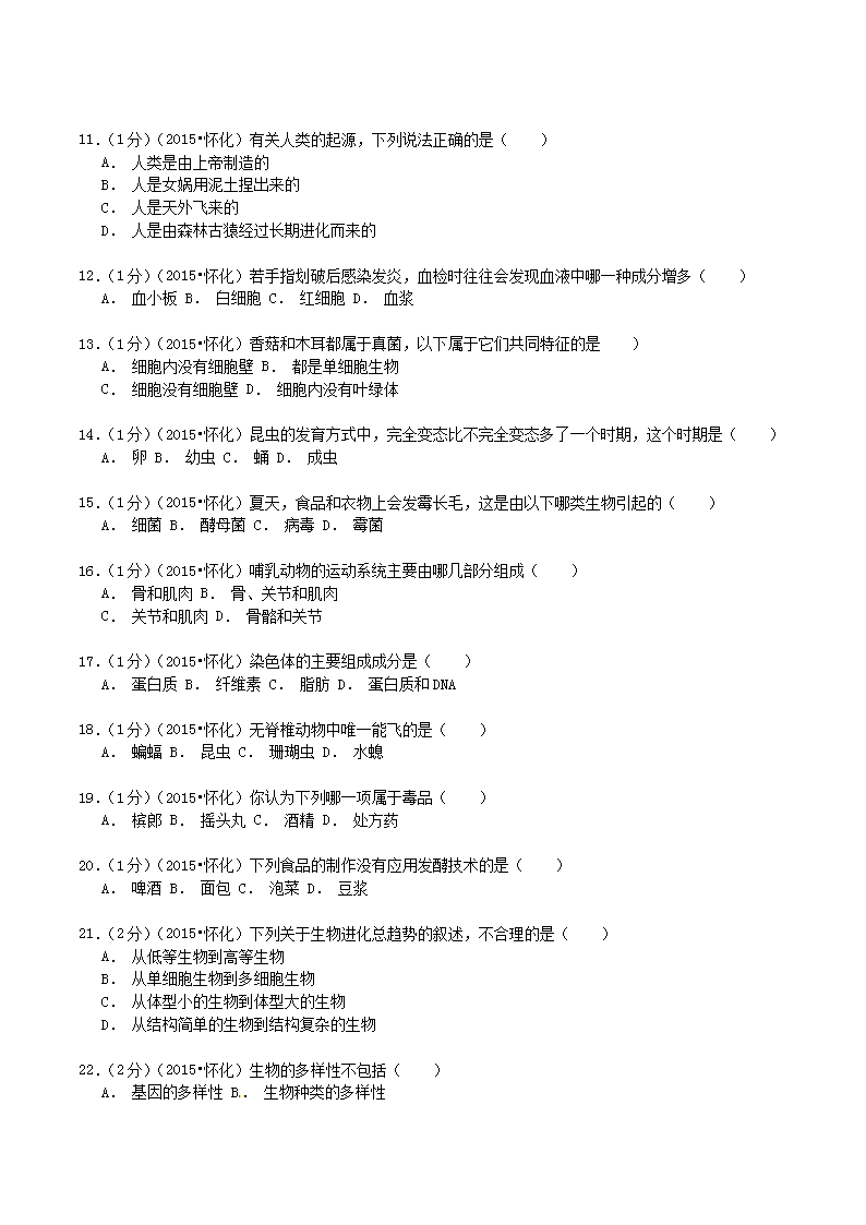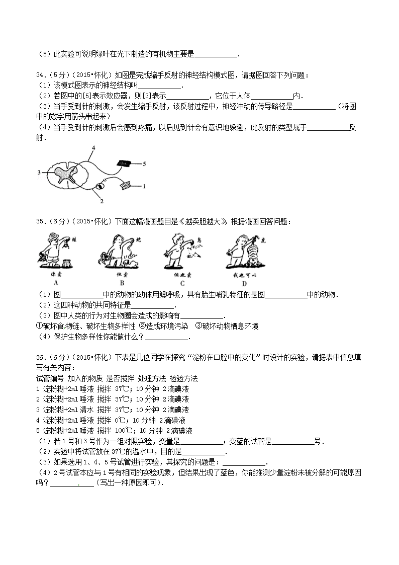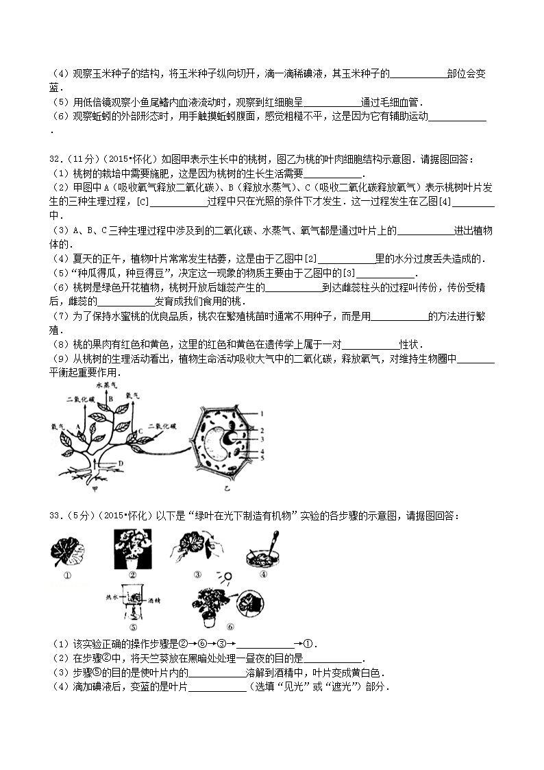 【文档名称】 2015年湖南省怀化市中考生物真题及答案(Word版).doc