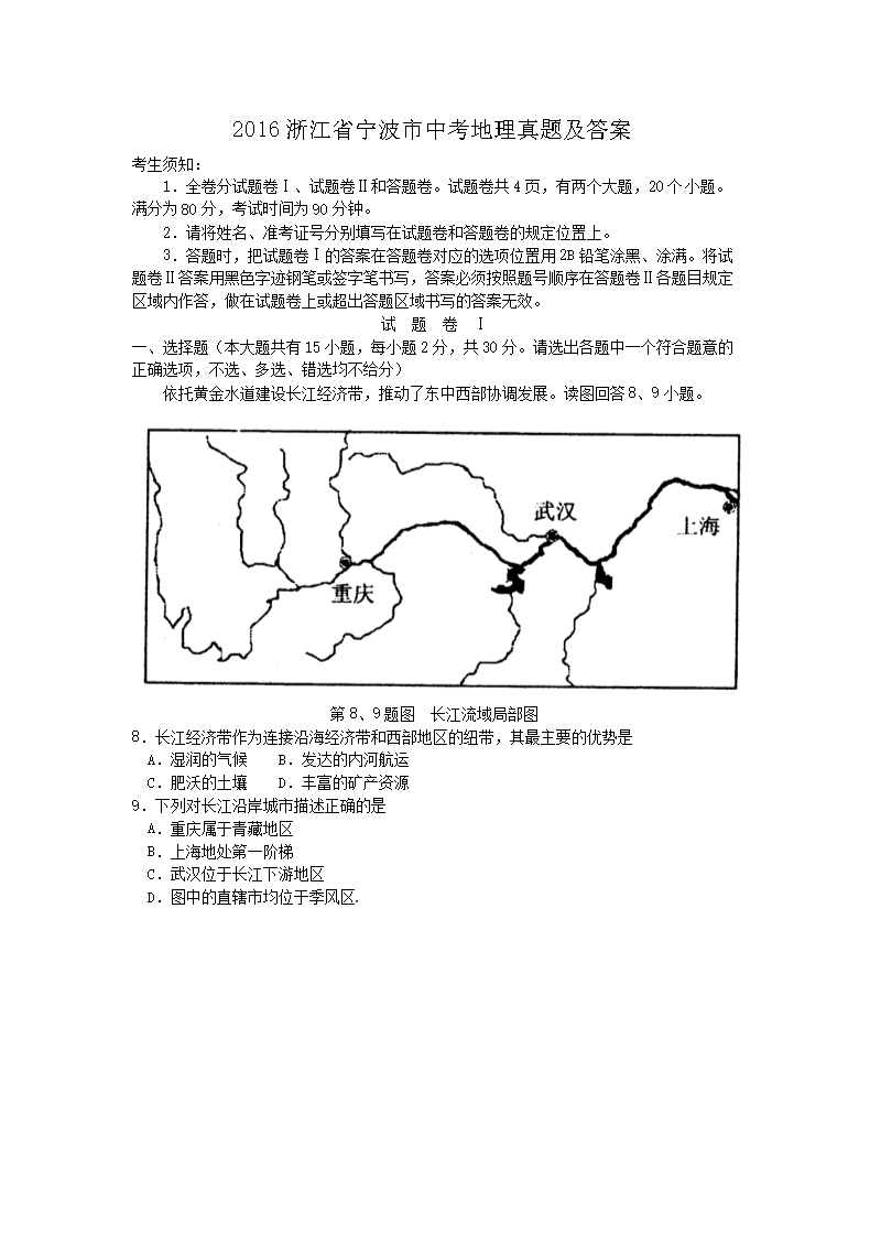 【文档预览】 无忧考网整理发布2016浙江省宁波市中考地理真题及答案(Word版),前五页预览如下: