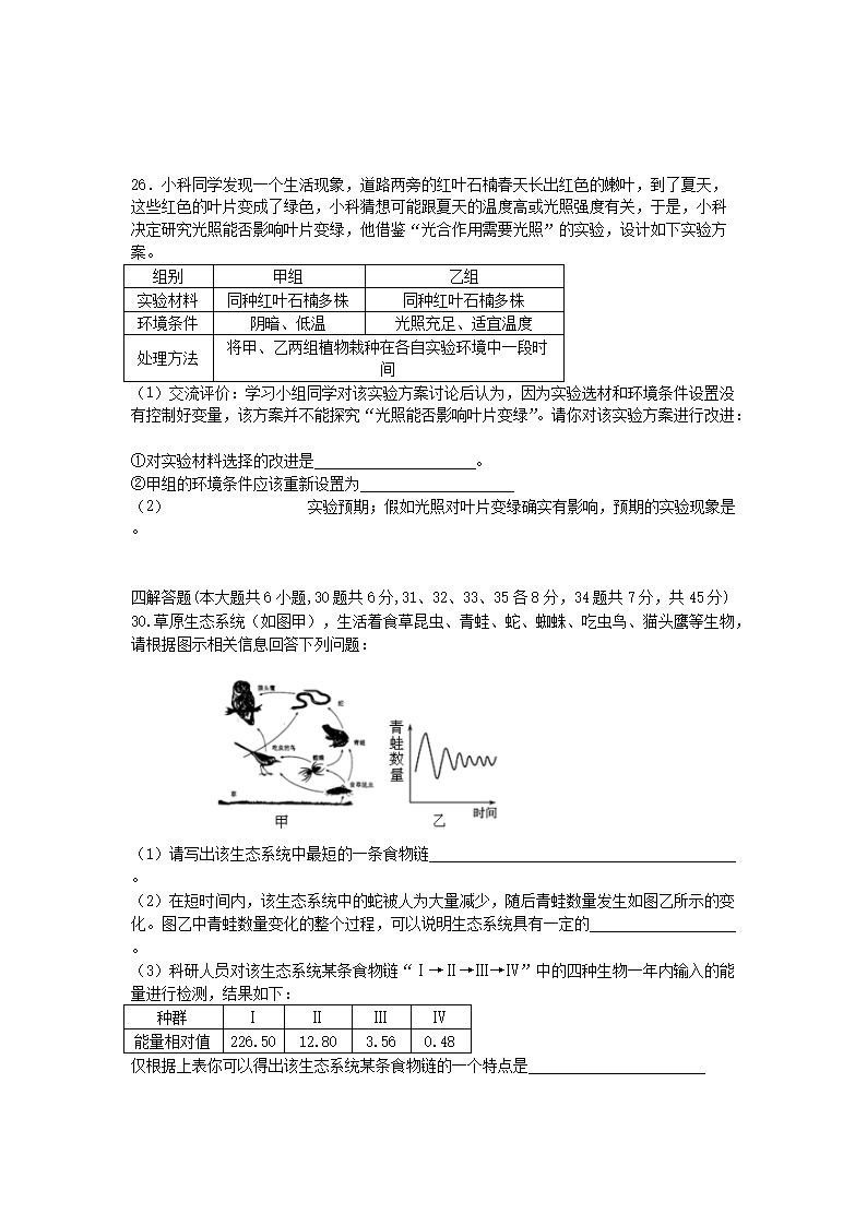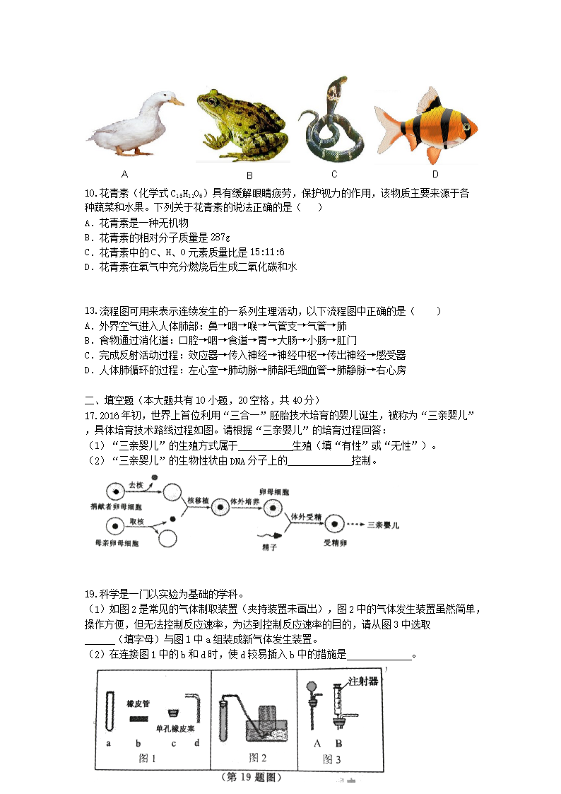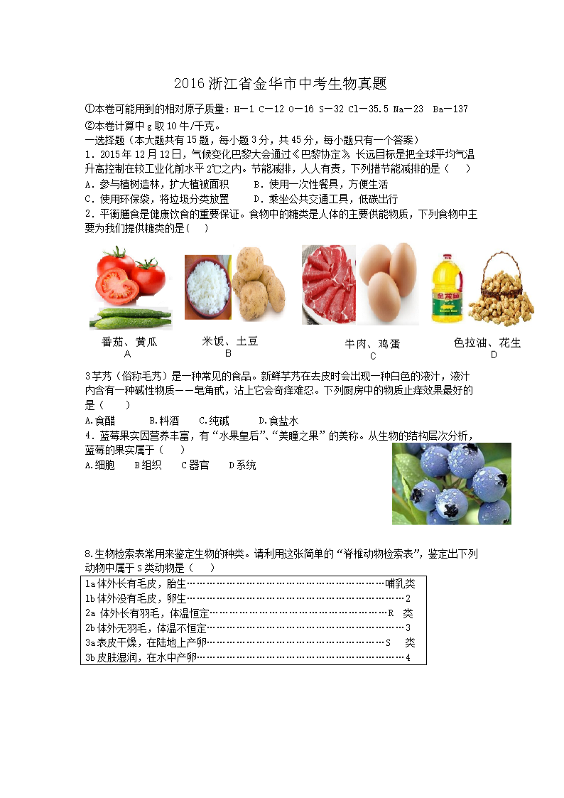 【文档名称】 2016浙江省金华市中考生物真题(Word版).doc