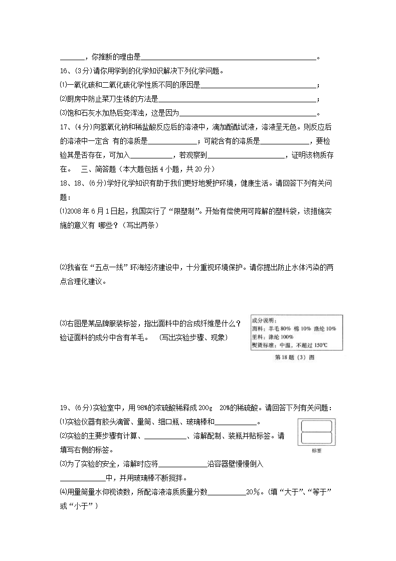 【文档名称】 2008年辽宁省辽阳市中考化学真题及答案(六三制)(Word版).doc