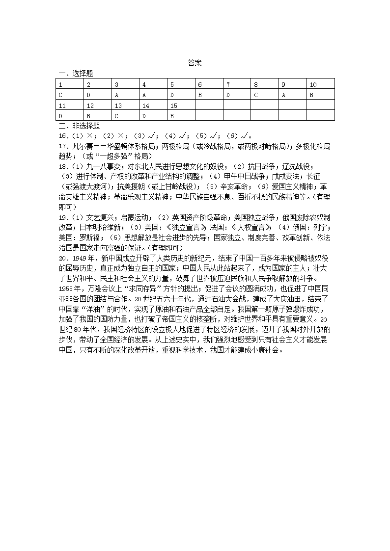 【文档名称】 2013年吉林四平中考历史真题及答案(Word版).doc