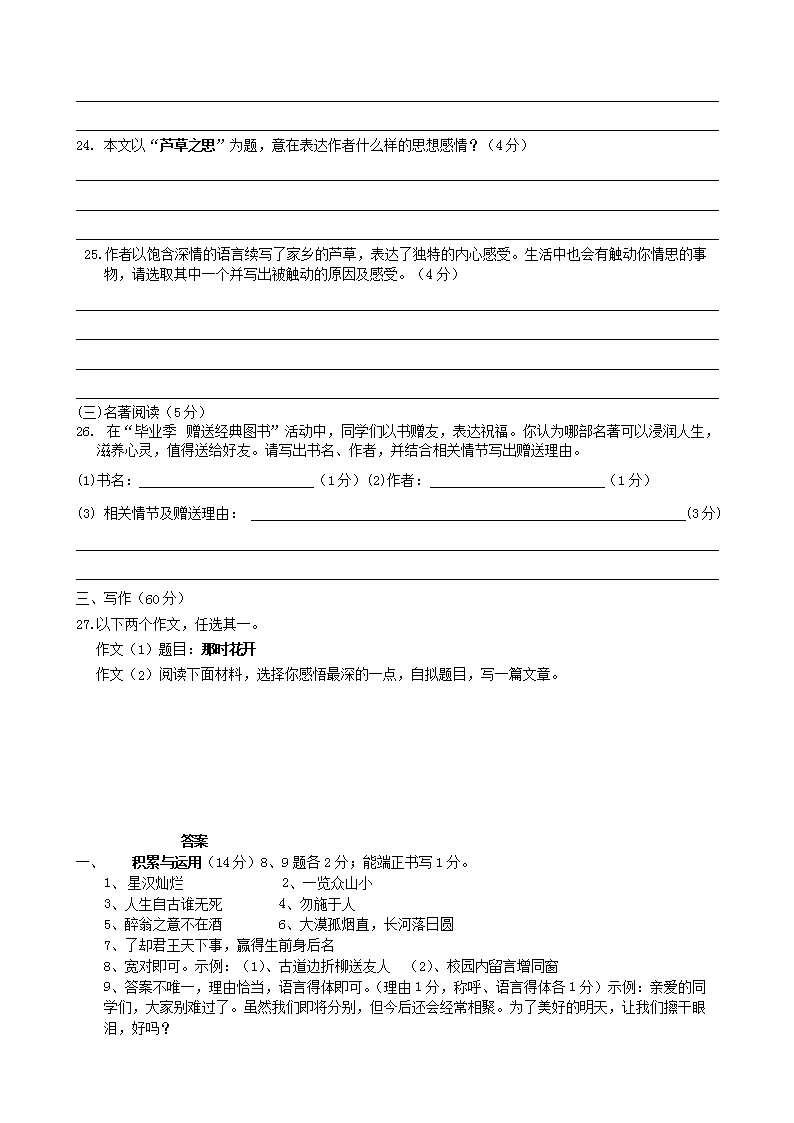 【文档预览】 无忧考网整理发布2014年吉林白城中考语文真题及答案(Word版),前五页预览如下: