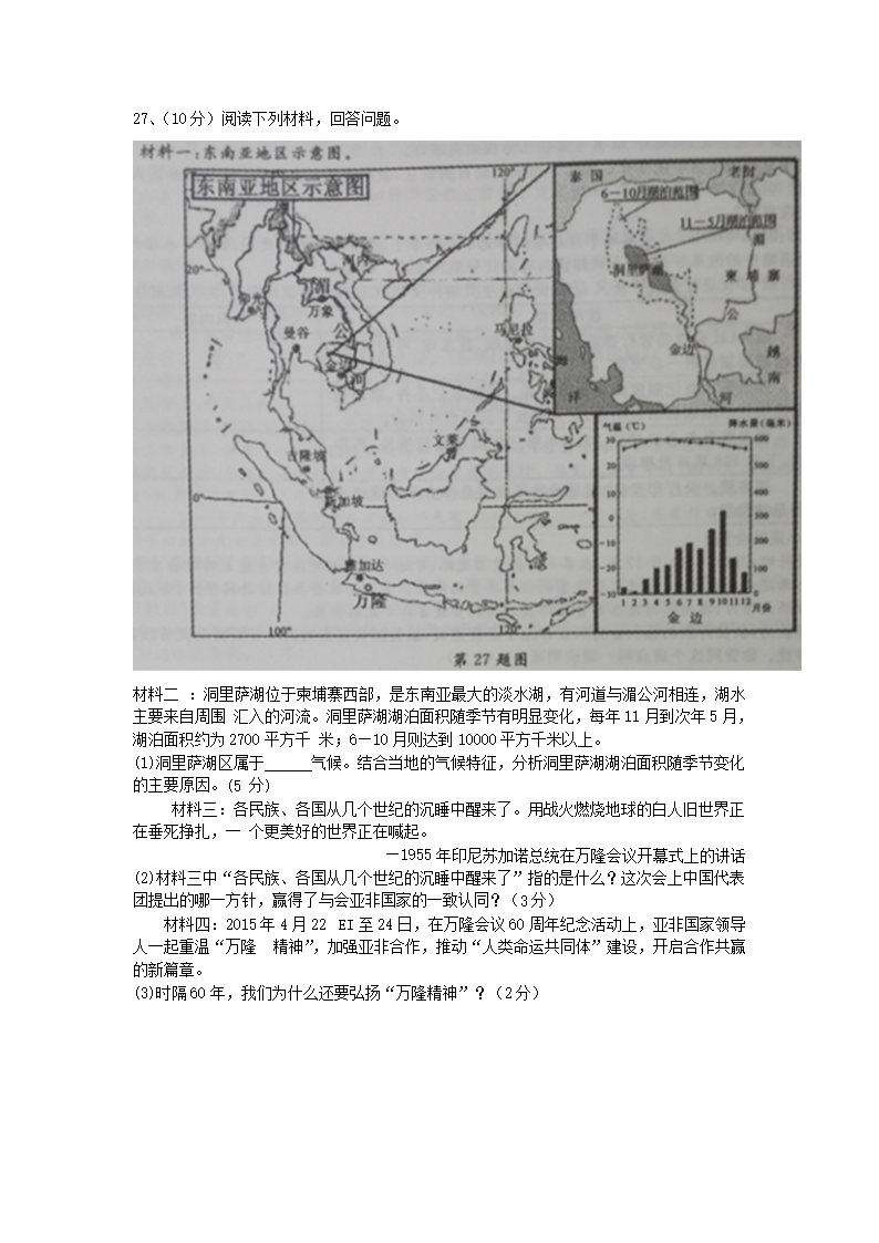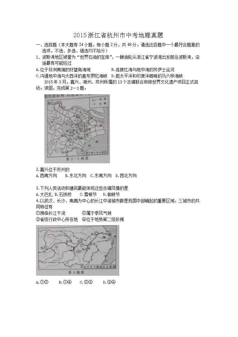 【文档名称】 2015浙江省杭州市中考地理真题(Word版).doc