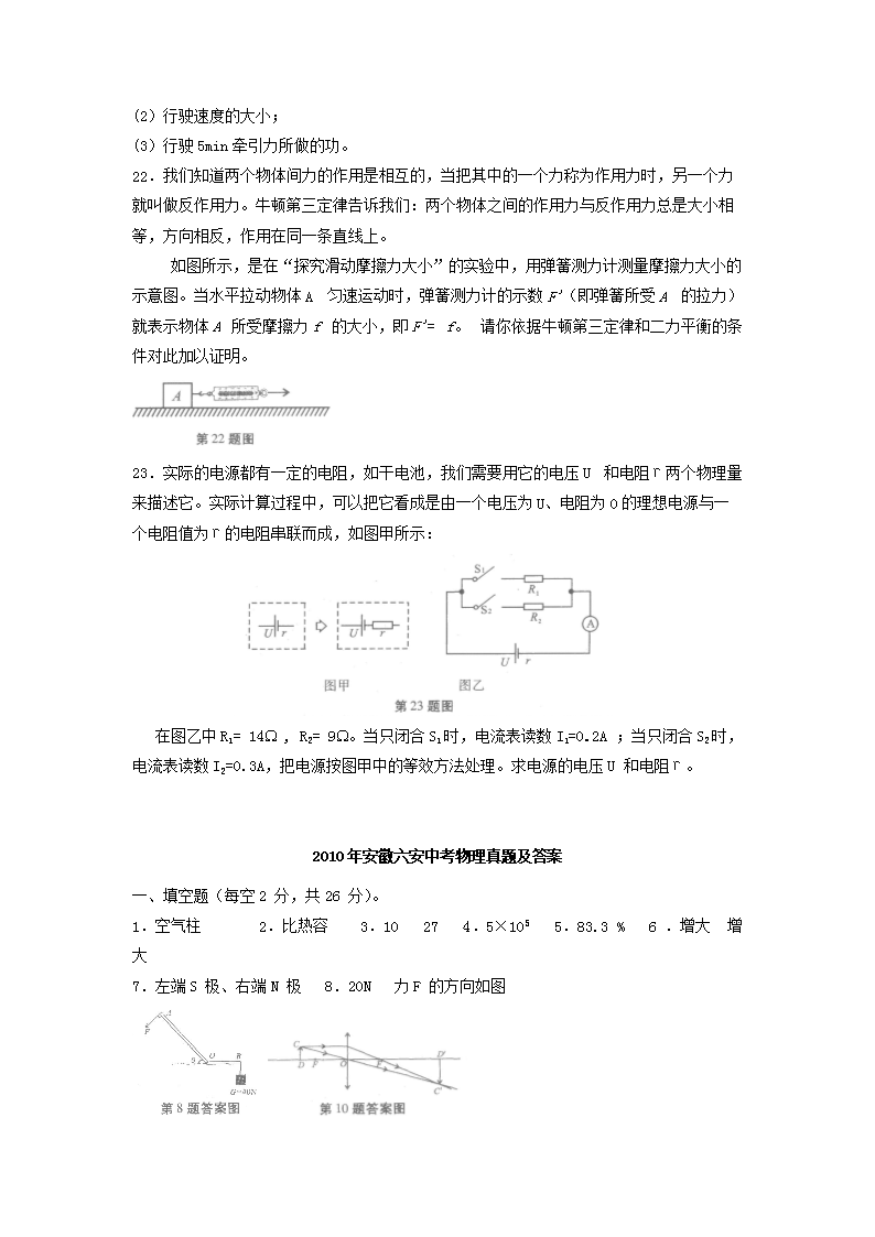 【文档名称】 2010年安徽六安中考物理真题及答案(Word版).doc