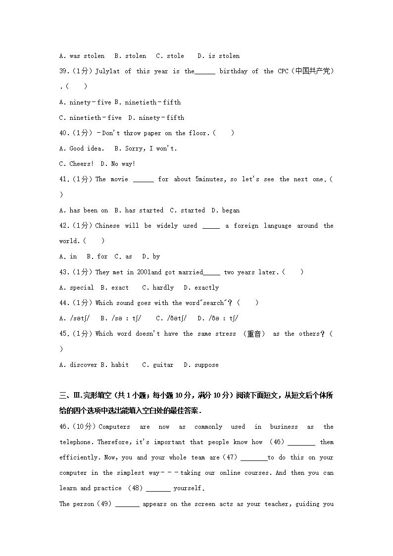 【文档预览】 无忧考网整理发布2016年甘肃省白银市中考英语真题及答案(Word版),前五页预览如下: