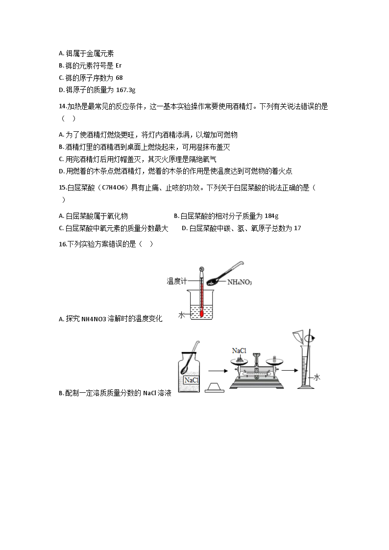 【文档名称】 2021年云南昆明中考化学真题及答案(Word版).doc