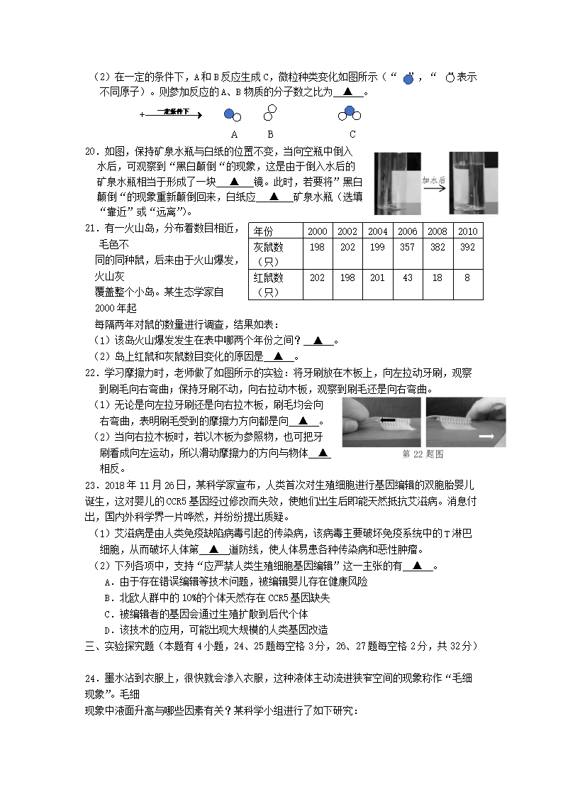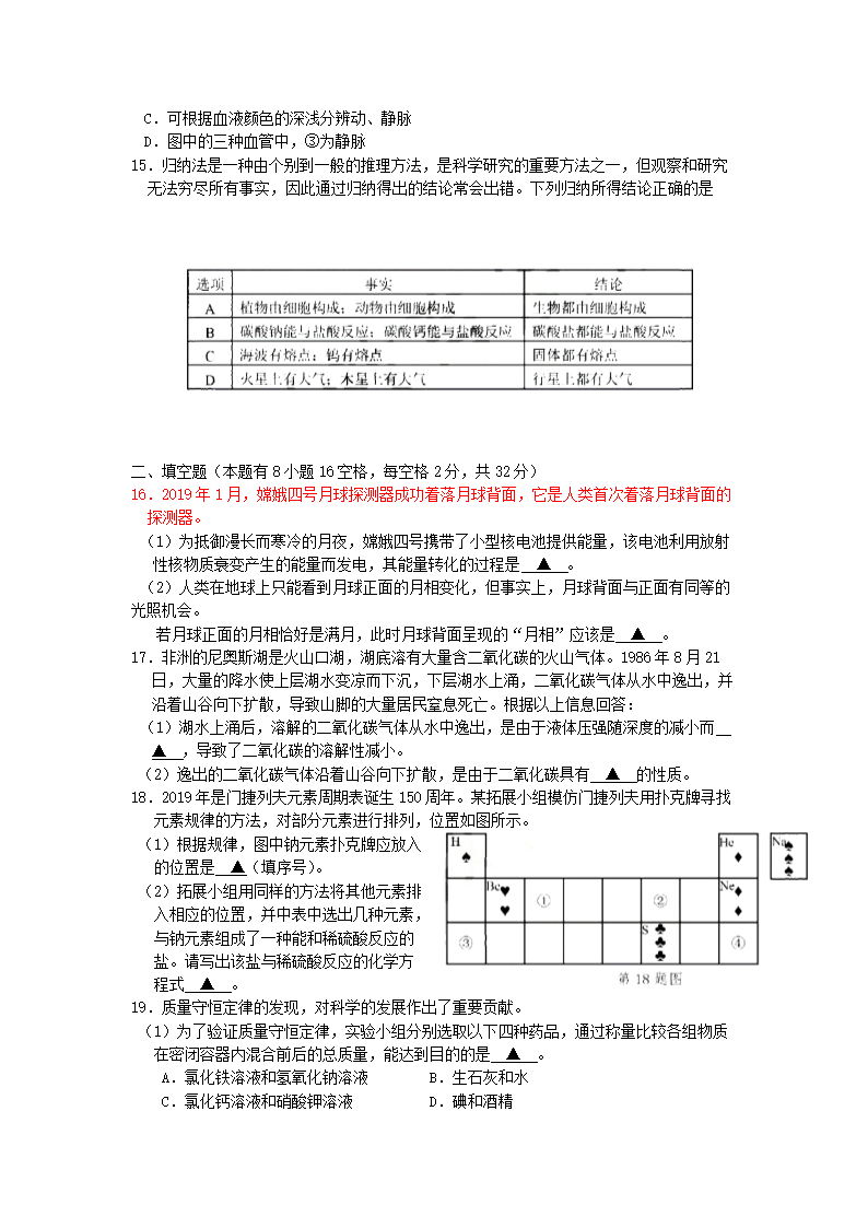 【文档名称】 2019浙江省嘉兴市中考科学真题及答案(Word版).doc