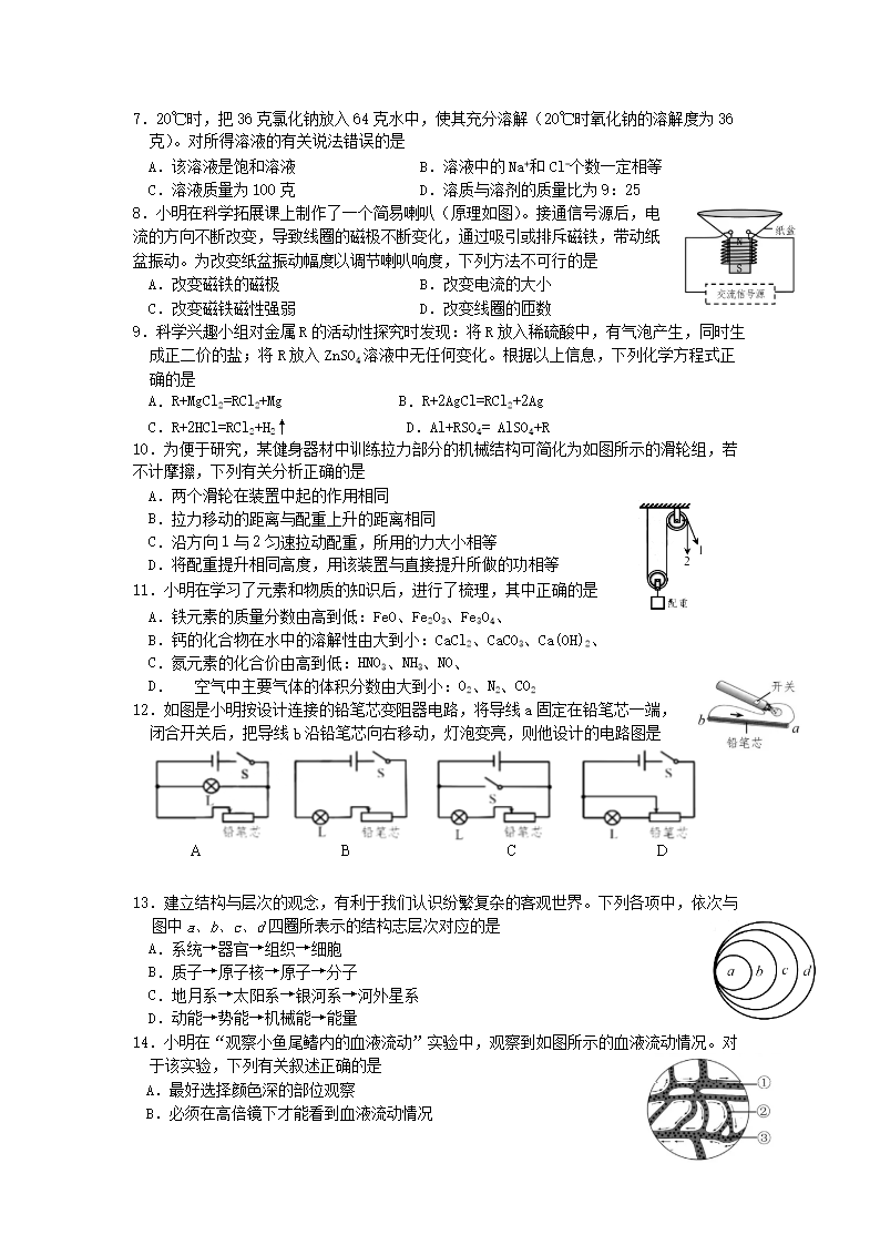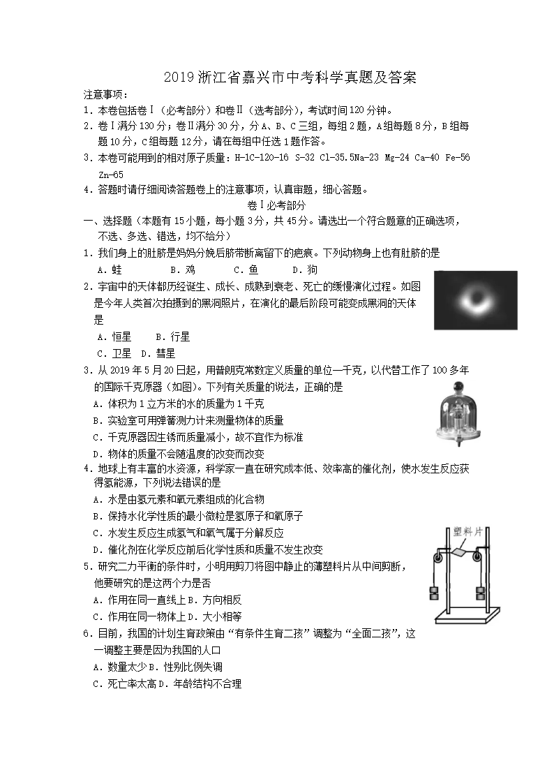 【文档预览】 无忧考网整理发布2019浙江省嘉兴市中考科学真题及答案(Word版),前五页预览如下: