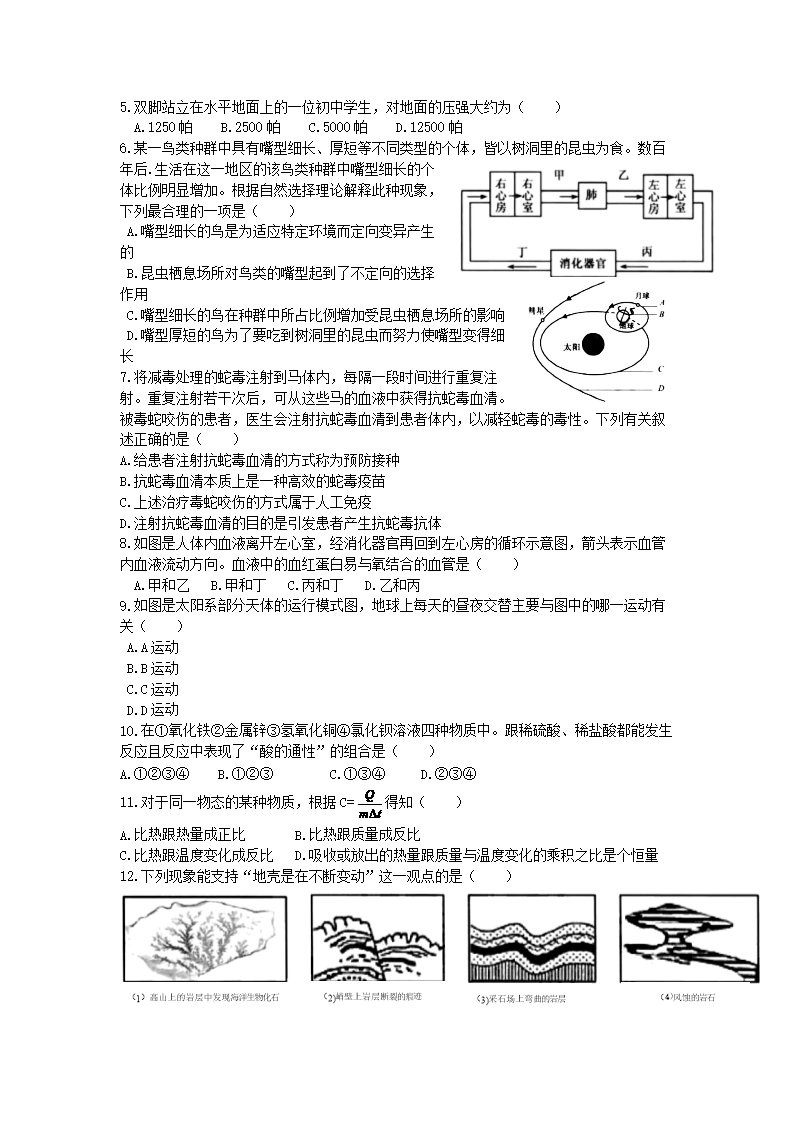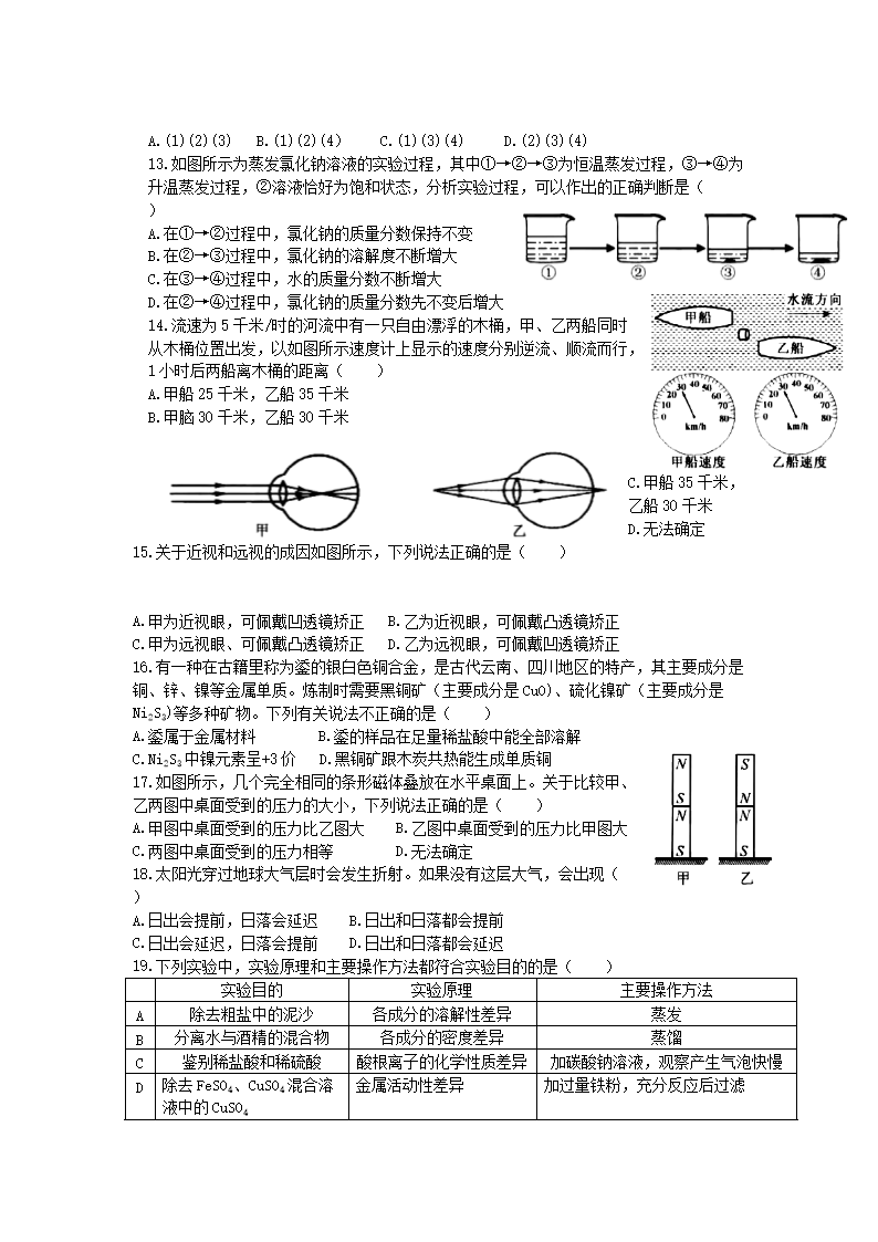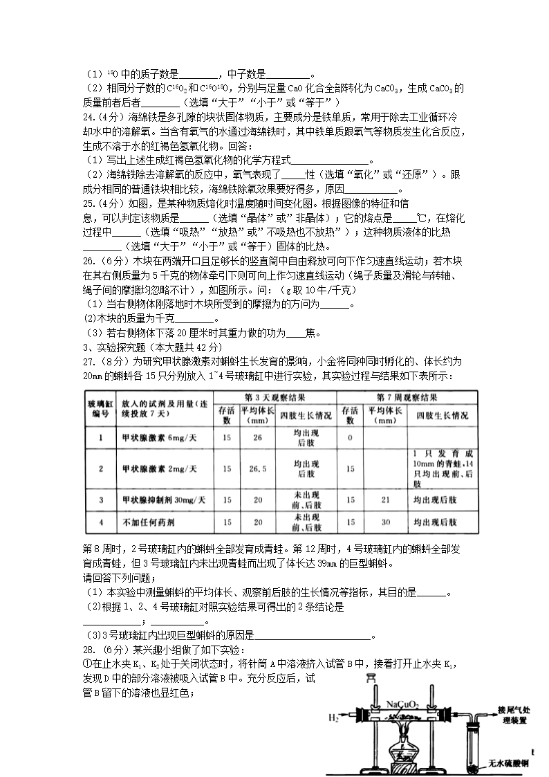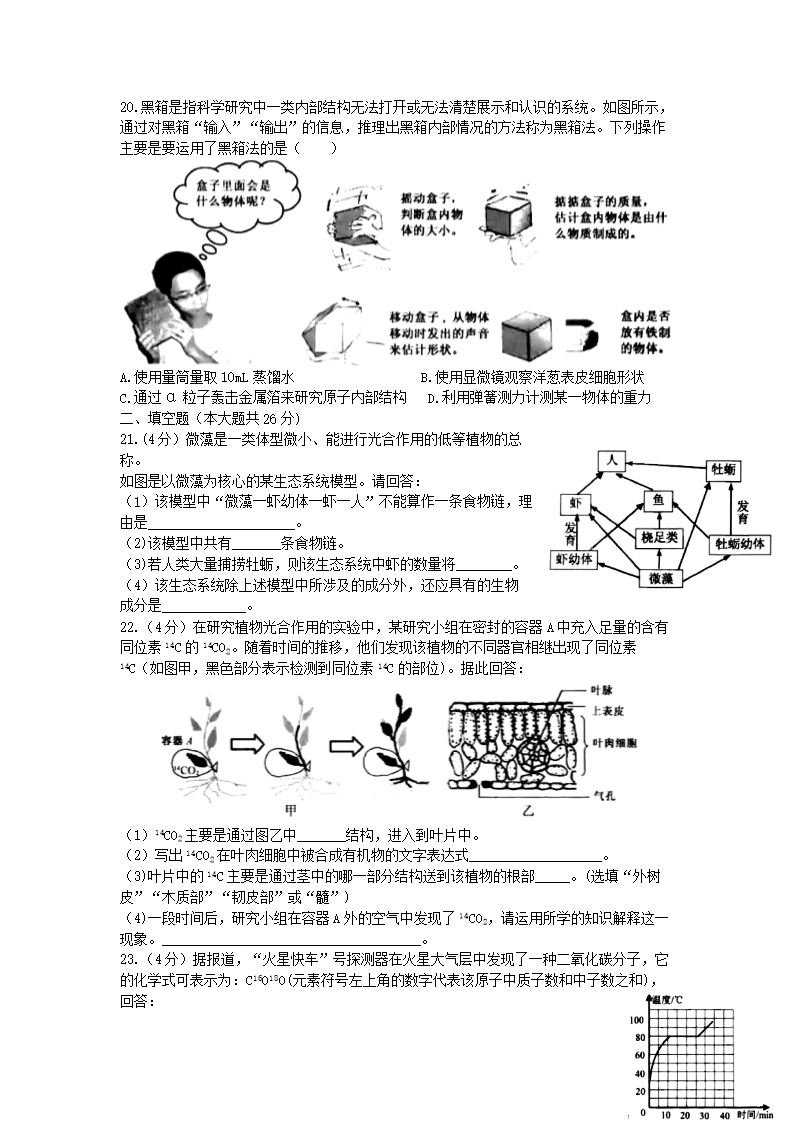 【文档名称】 2019浙江省杭州市中考科学真题及答案(Word版).doc