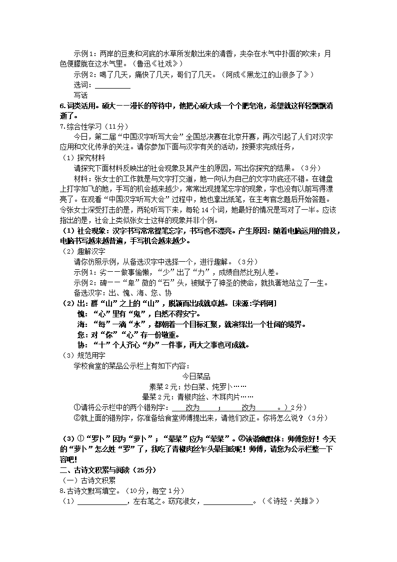 【文档预览】 无忧考网整理发布2014年重庆沙坪坝中考语文真题及答案A卷(Word版),前五页预览如下: