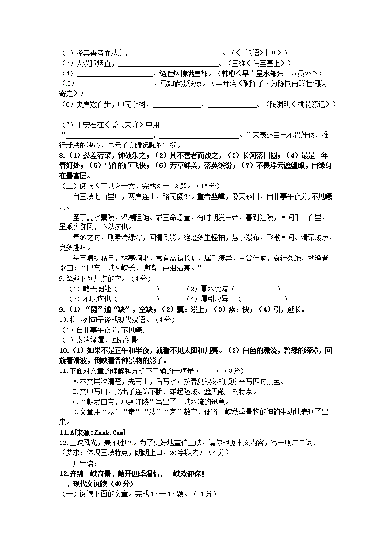 【文档预览】 无忧考网整理发布2014年重庆巴南中考语文真题及答案A卷(Word版),前五页预览如下: