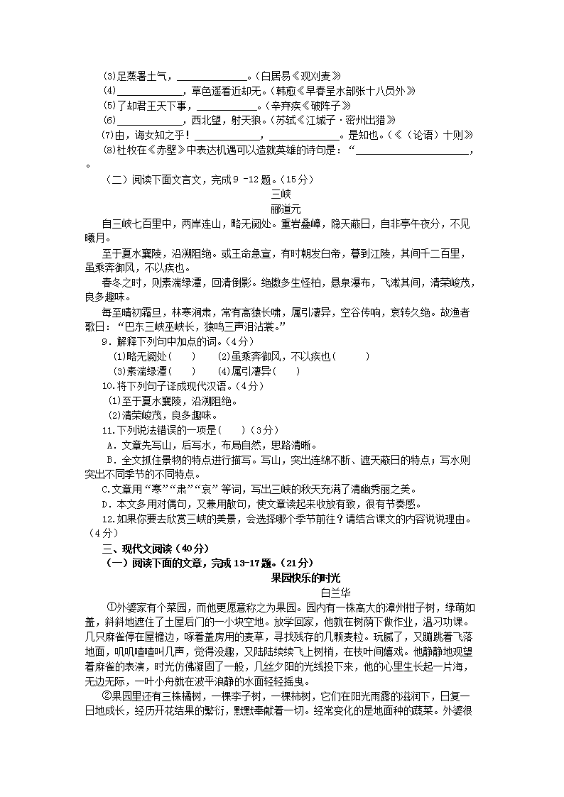 【文档名称】 2014年重庆渝中中考语文真题及答案B卷(Word版).doc