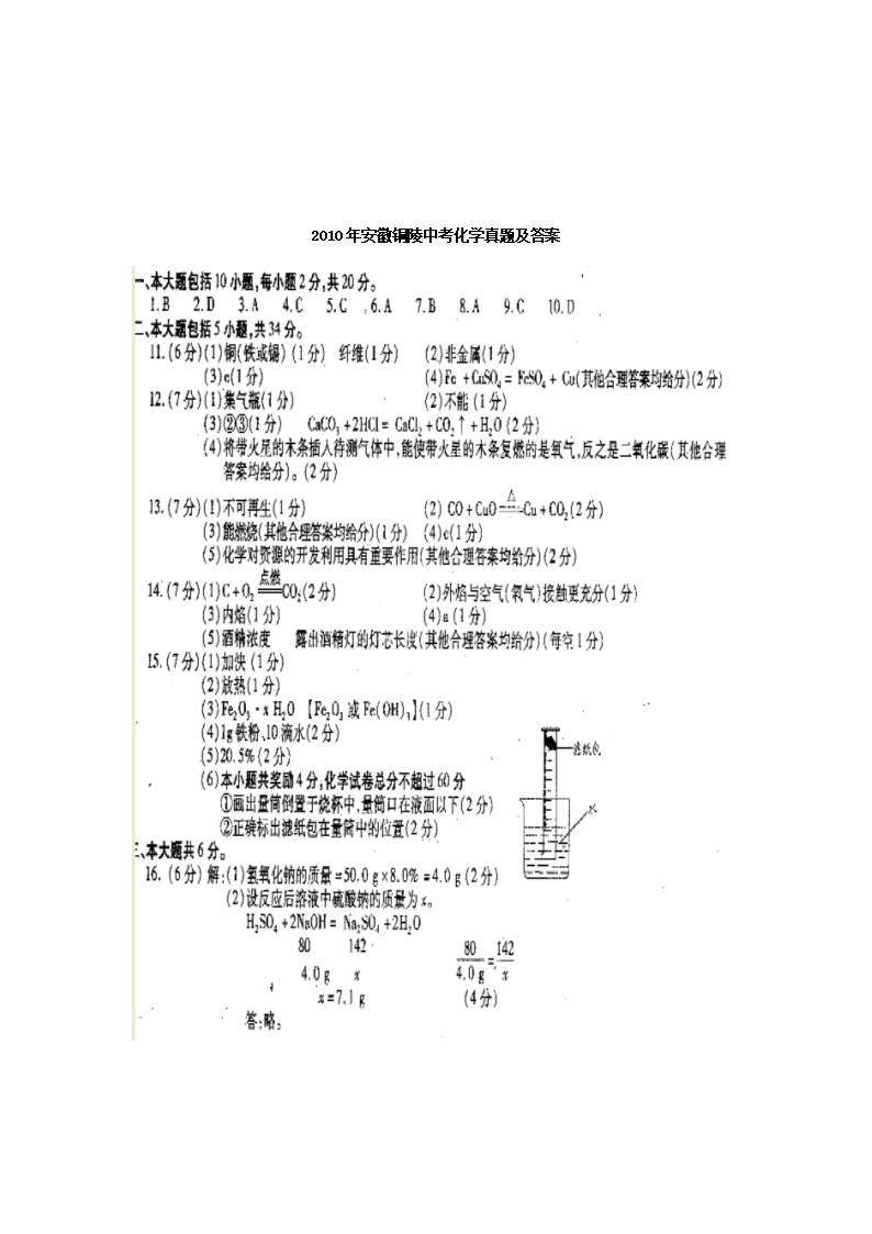 【文档名称】 2010年安徽铜陵中考化学真题及答案(Word版).doc