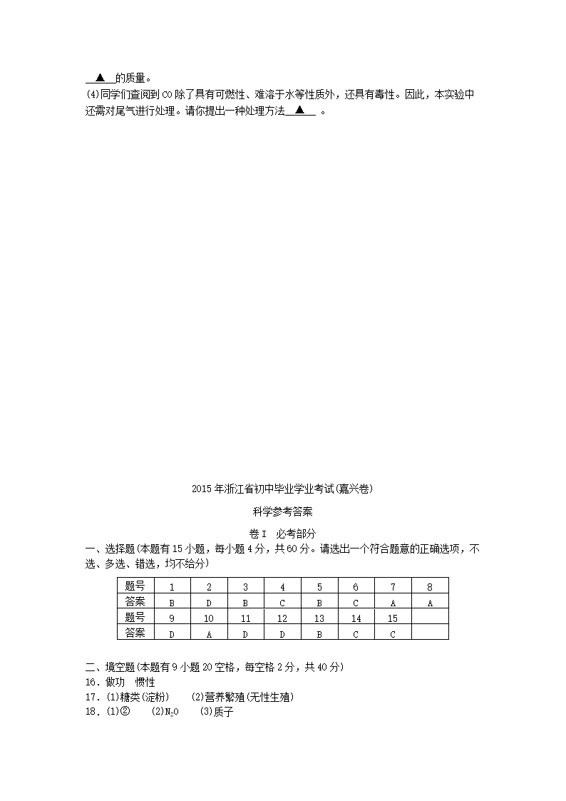 【文档名称】 2015浙江省嘉兴市中考化学真题及答案(Word版).doc