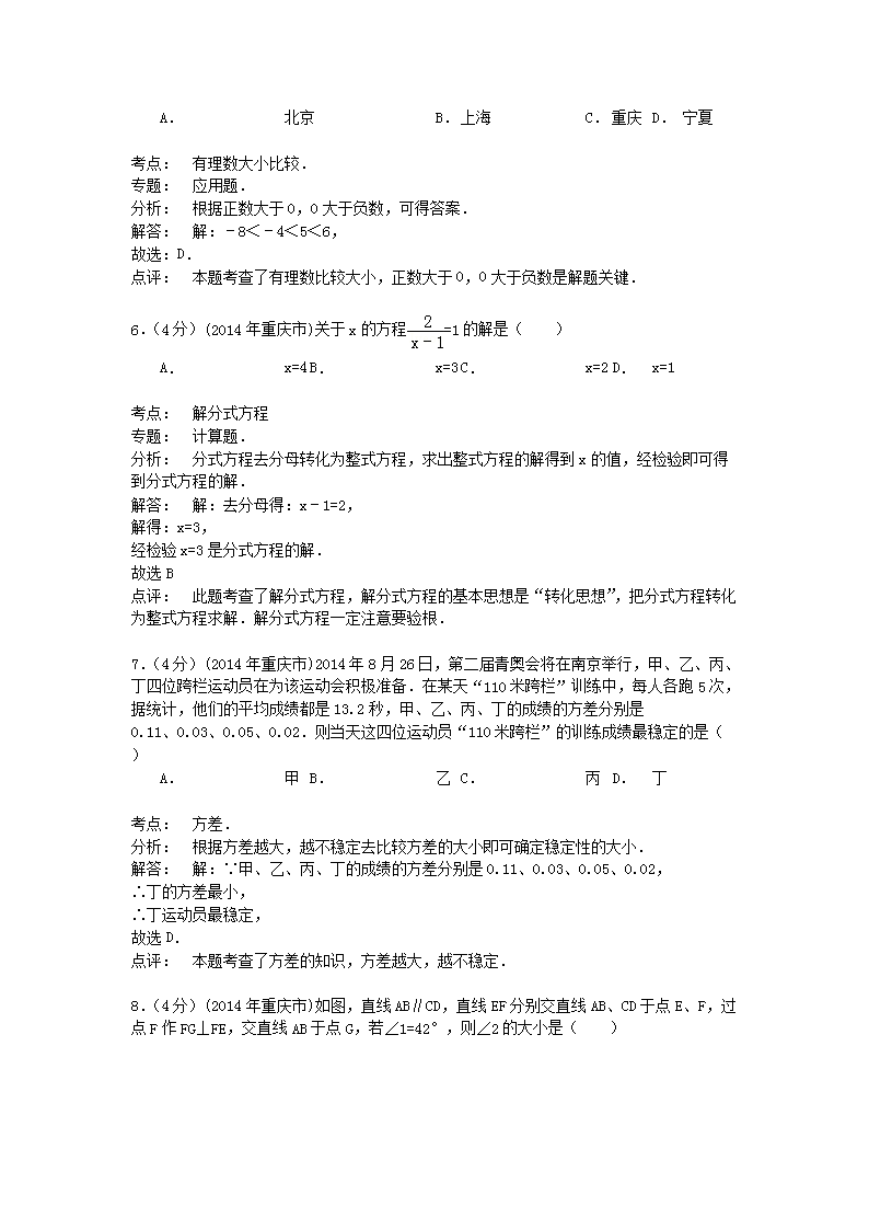 【文档名称】 2014年重庆合川中考数学真题及答案A卷(Word版).doc