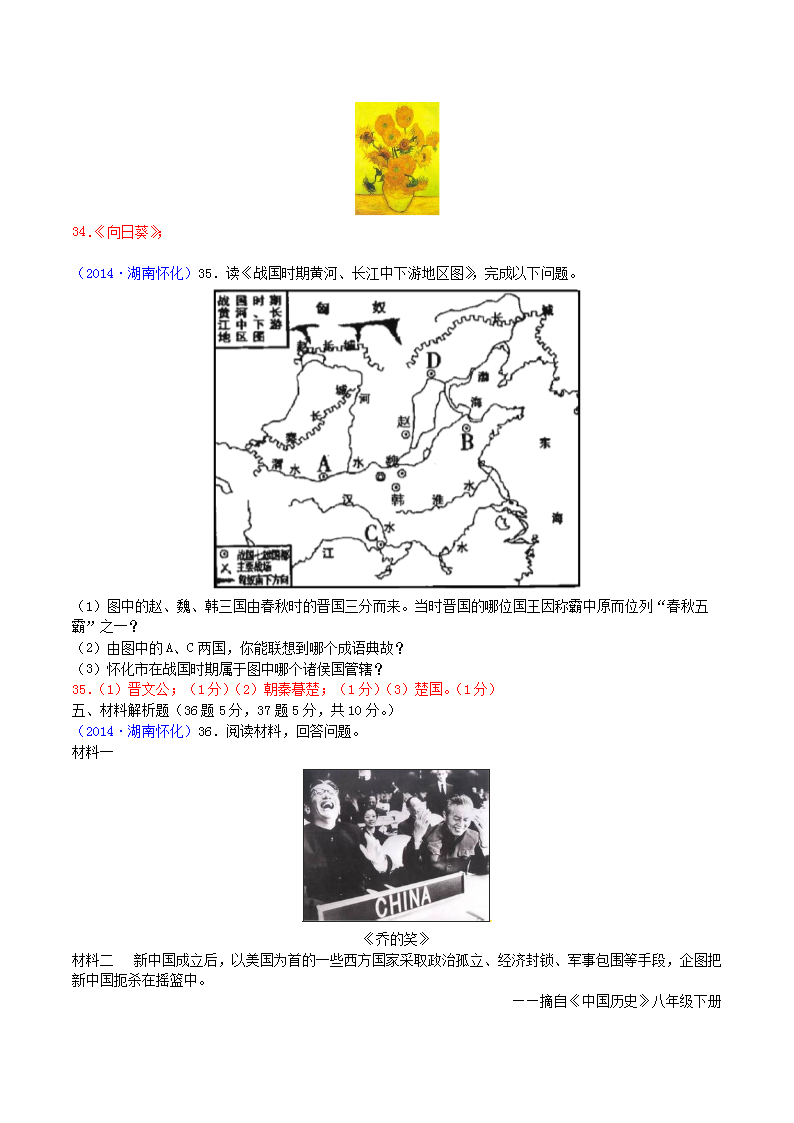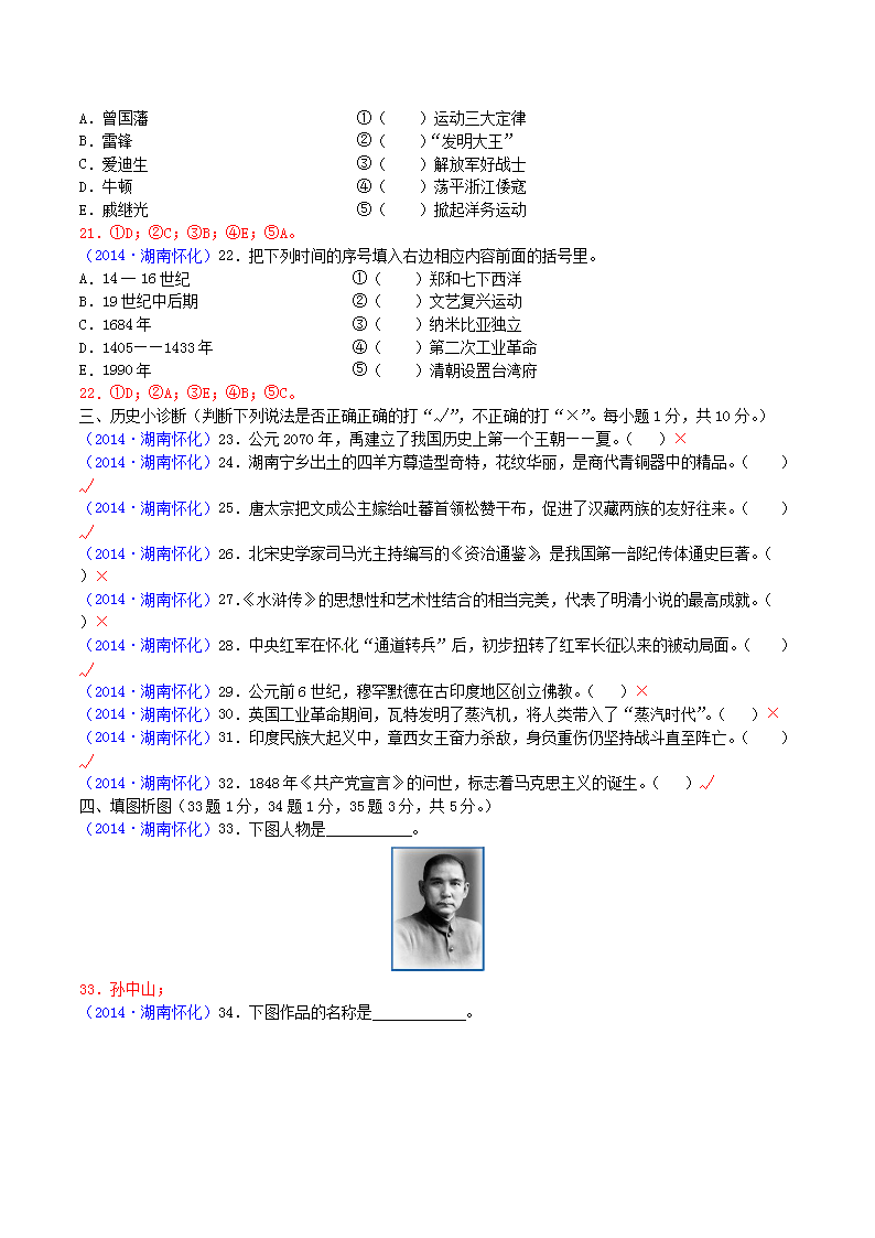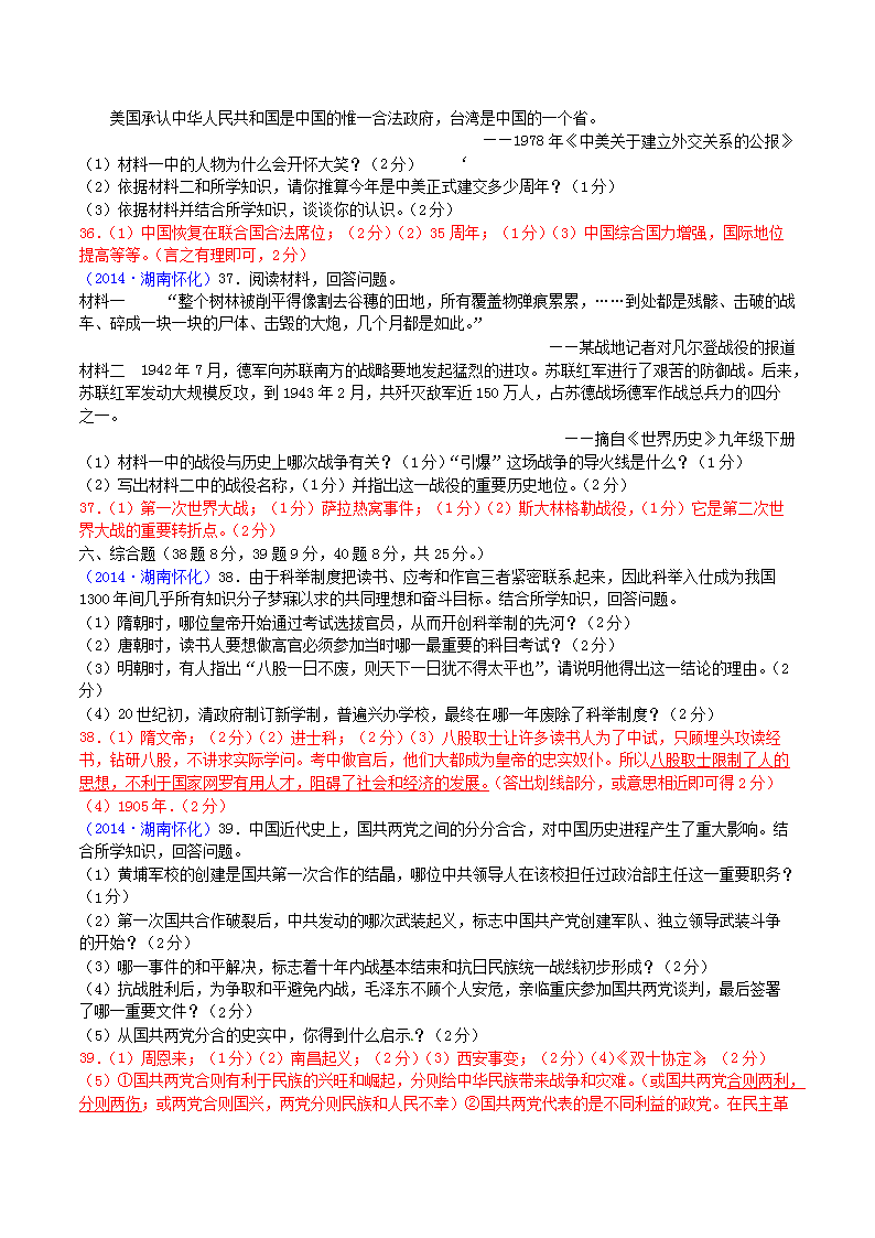 【文档名称】 2014年湖南省怀化市中考历史真题及答案(Word版).doc