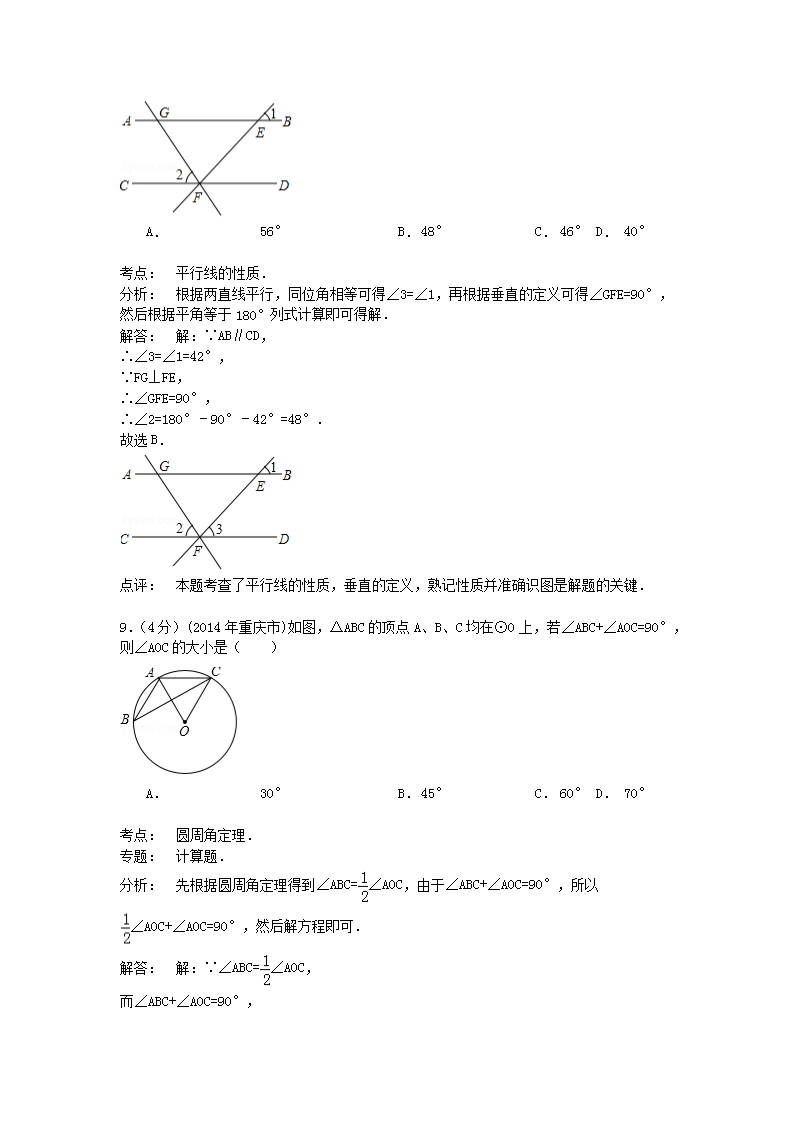 【文档名称】 2014年重庆黔江中考数学真题及答案A卷(Word版).doc