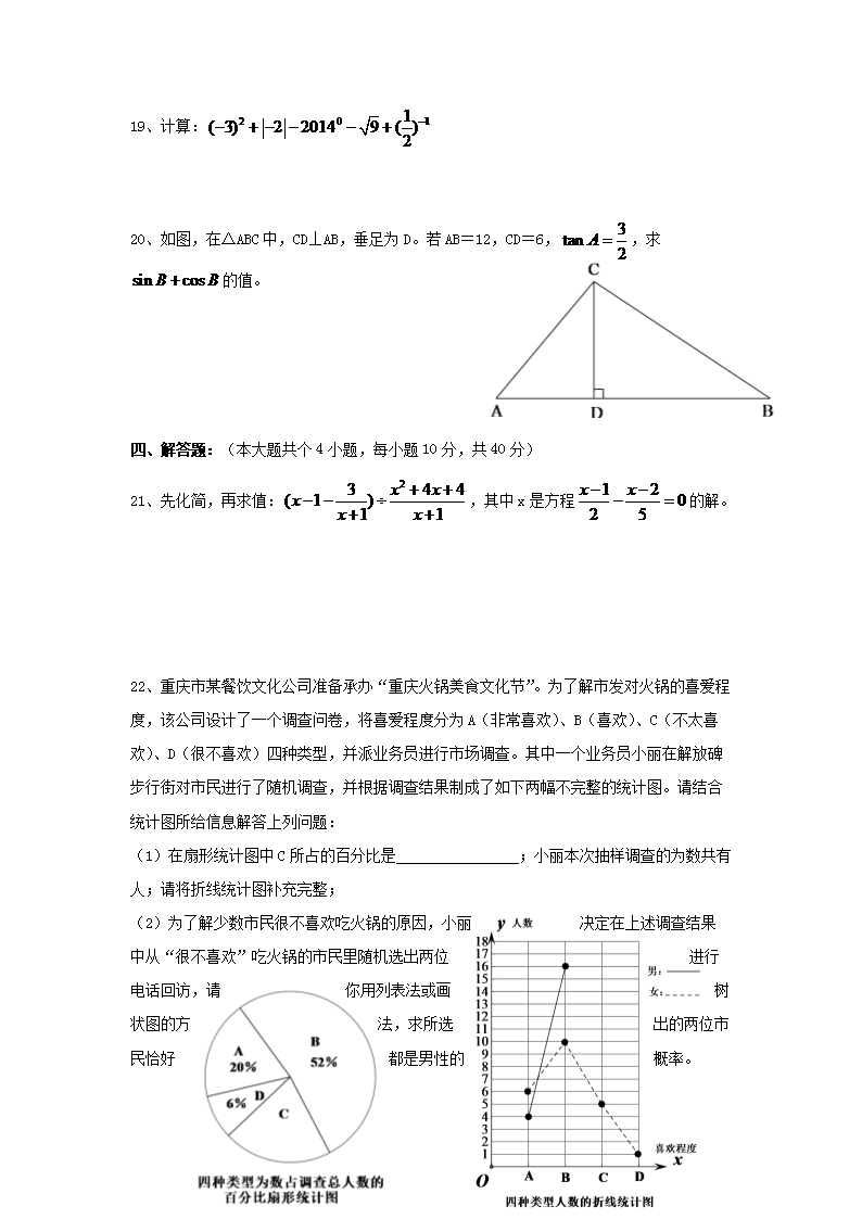 【文档名称】 2014年重庆合川中考数学真题及答案B卷(Word版).doc