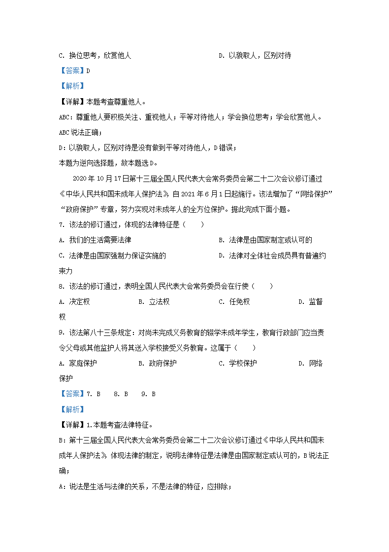 【文档名称】 2021年云南昆明中考道德与法治真题及答案(Word版).doc