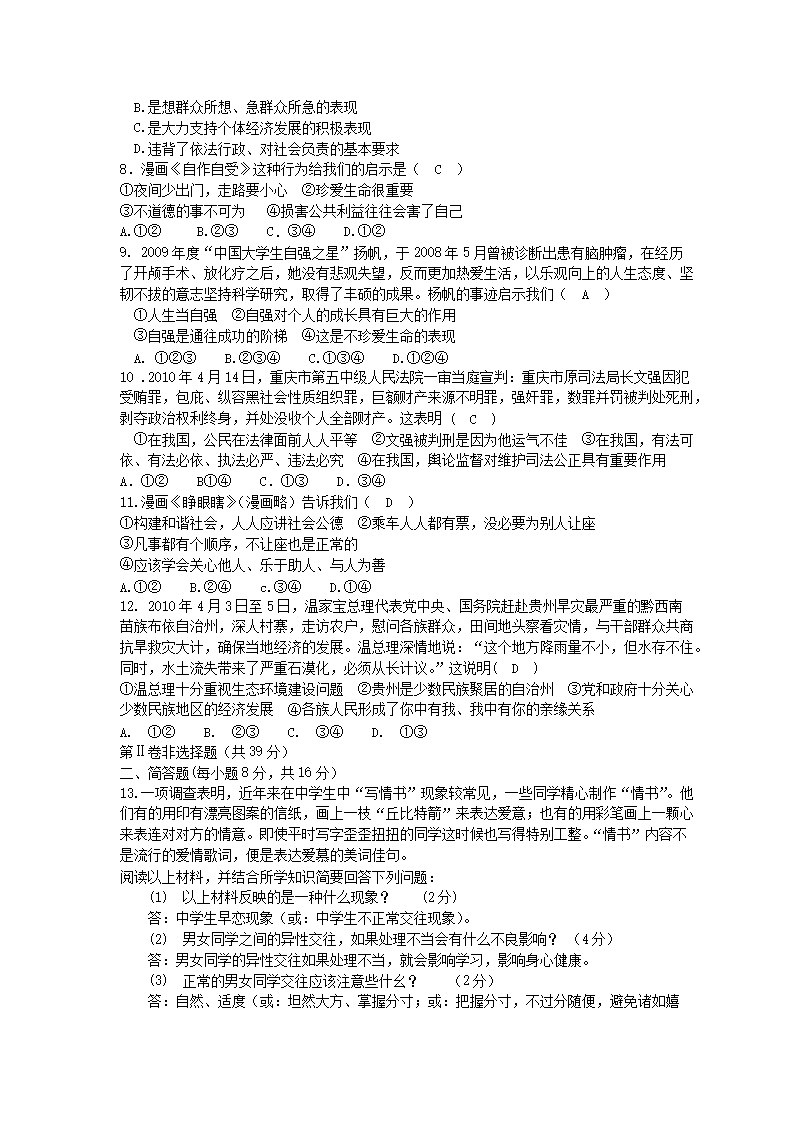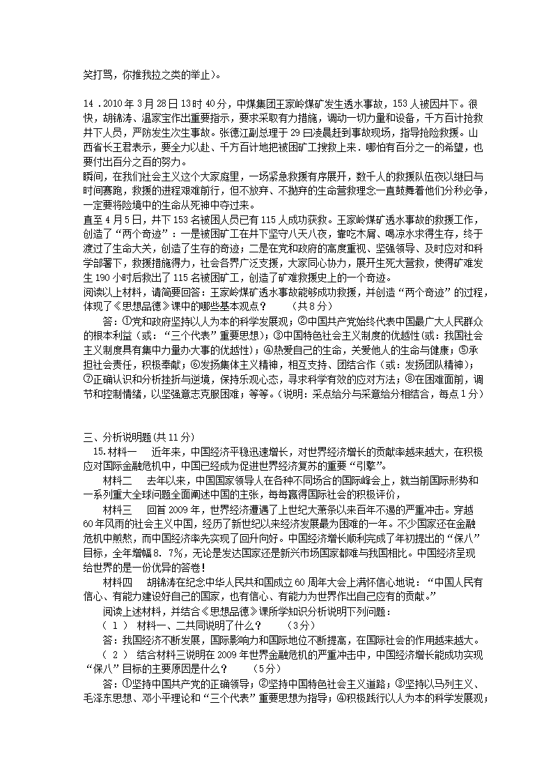 【文档名称】 2010年山西省运城中考政治真题及答案(Word版).doc