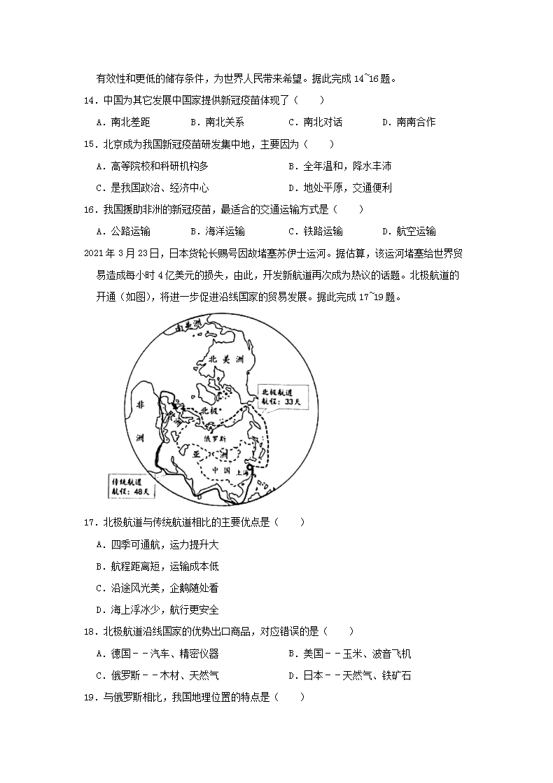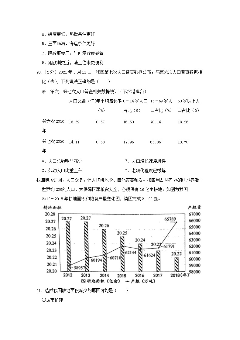 【文档名称】 2021年云南昆明中考地理真题及答案(Word版).doc