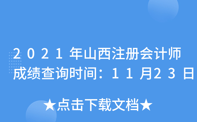 【#注册会计师考试# #2021年山西注册会计师成绩查询时间:11月23日#】中国注册会计师协会发布“关于发布2021年注册会计师全国统一考试成绩的公告”,2021年注册会计师成绩查询时间为11月23日,考生可登录中国注册会计师协会进行查分,®无忧考网小编祝大家取得优异成绩!