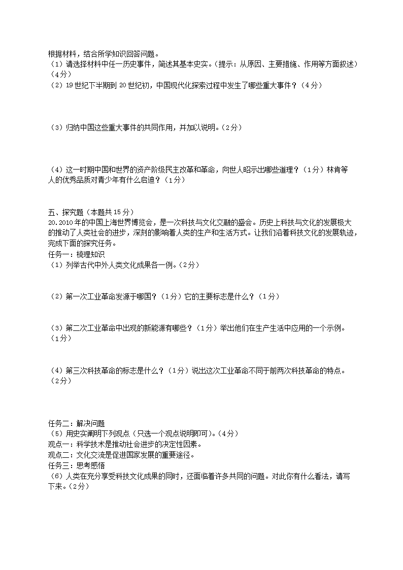 【文档名称】 2010年山西省长治中考历史真题及答案(Word版).doc