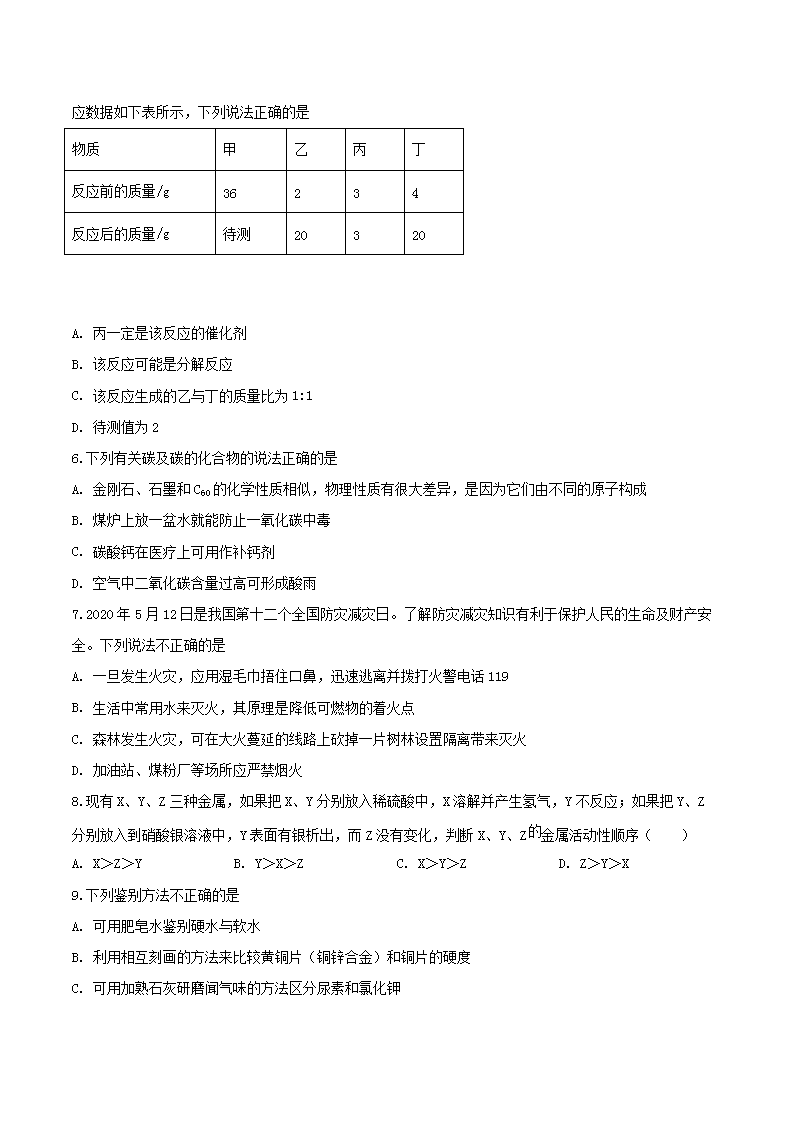 【文档名称】 2020年湖北省鄂州市中考化学真题及答案(Word版).doc