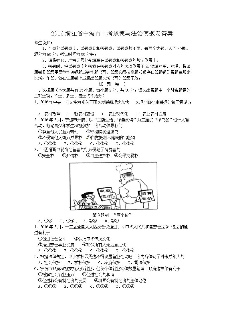 【文档预览】 无忧考网整理发布2016浙江省宁波市中考道德与法治真题及答案(Word版),前五页预览如下: