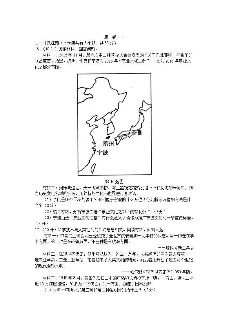 【文档名称】 2016浙江省宁波市中考道德与法治真题及答案(Word版).doc