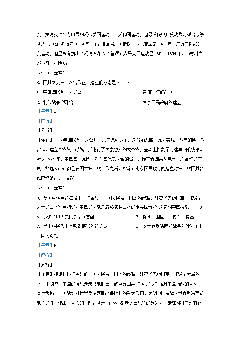 【文档名称】 2021年云南文山中考历史真题及答案(Word版).doc