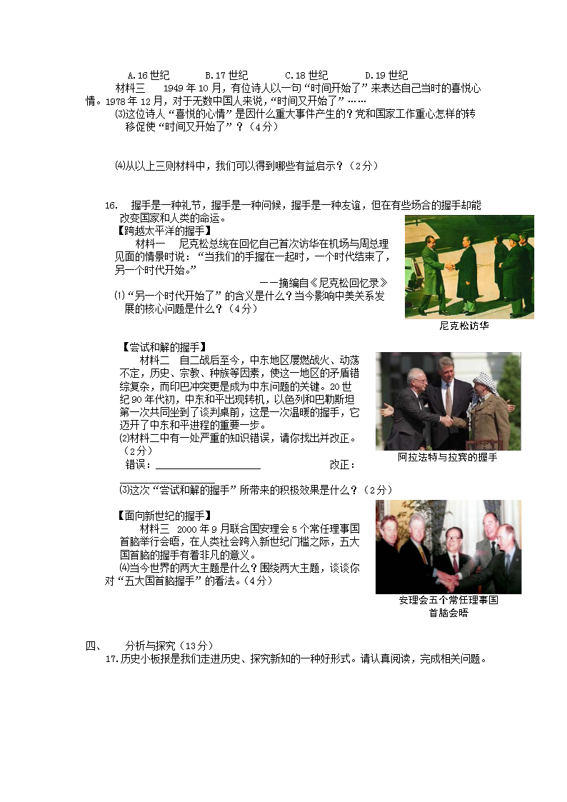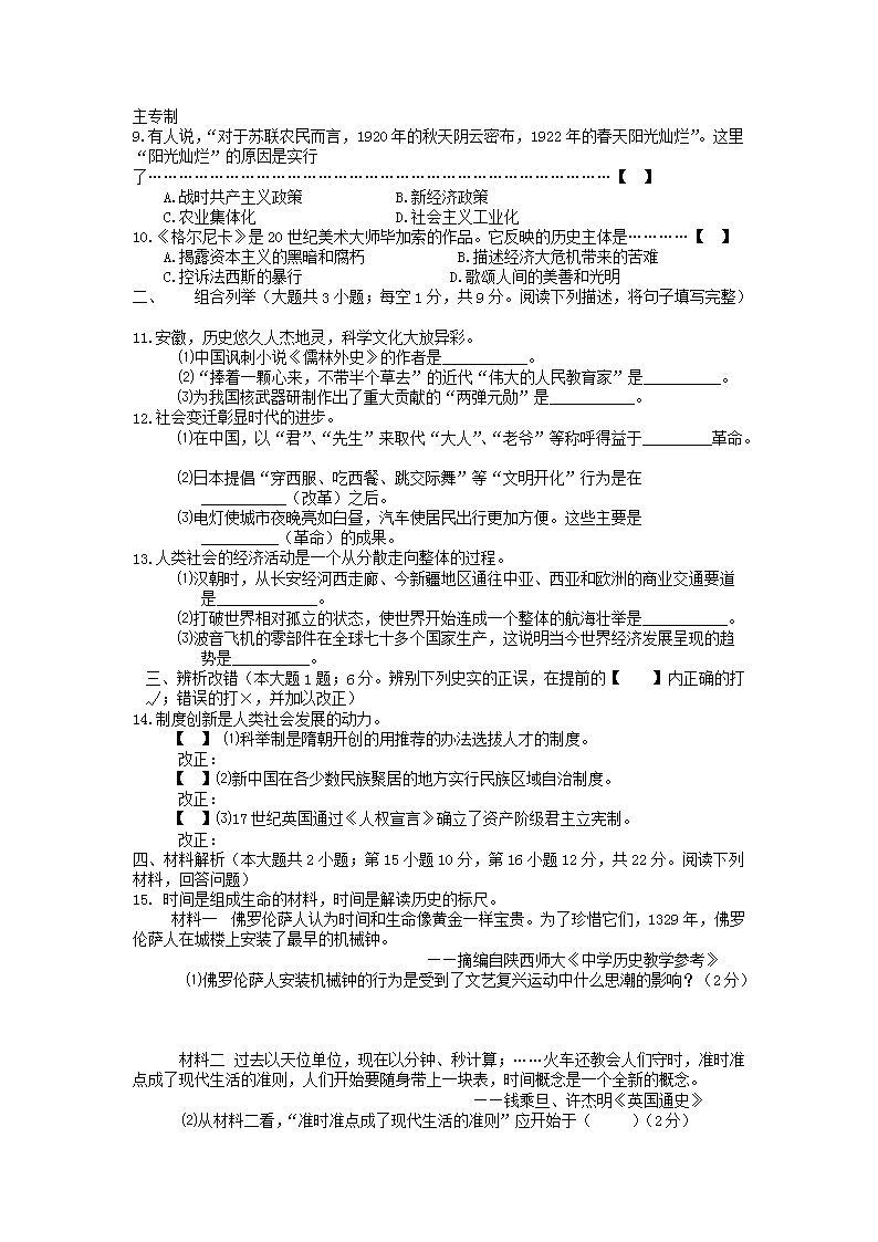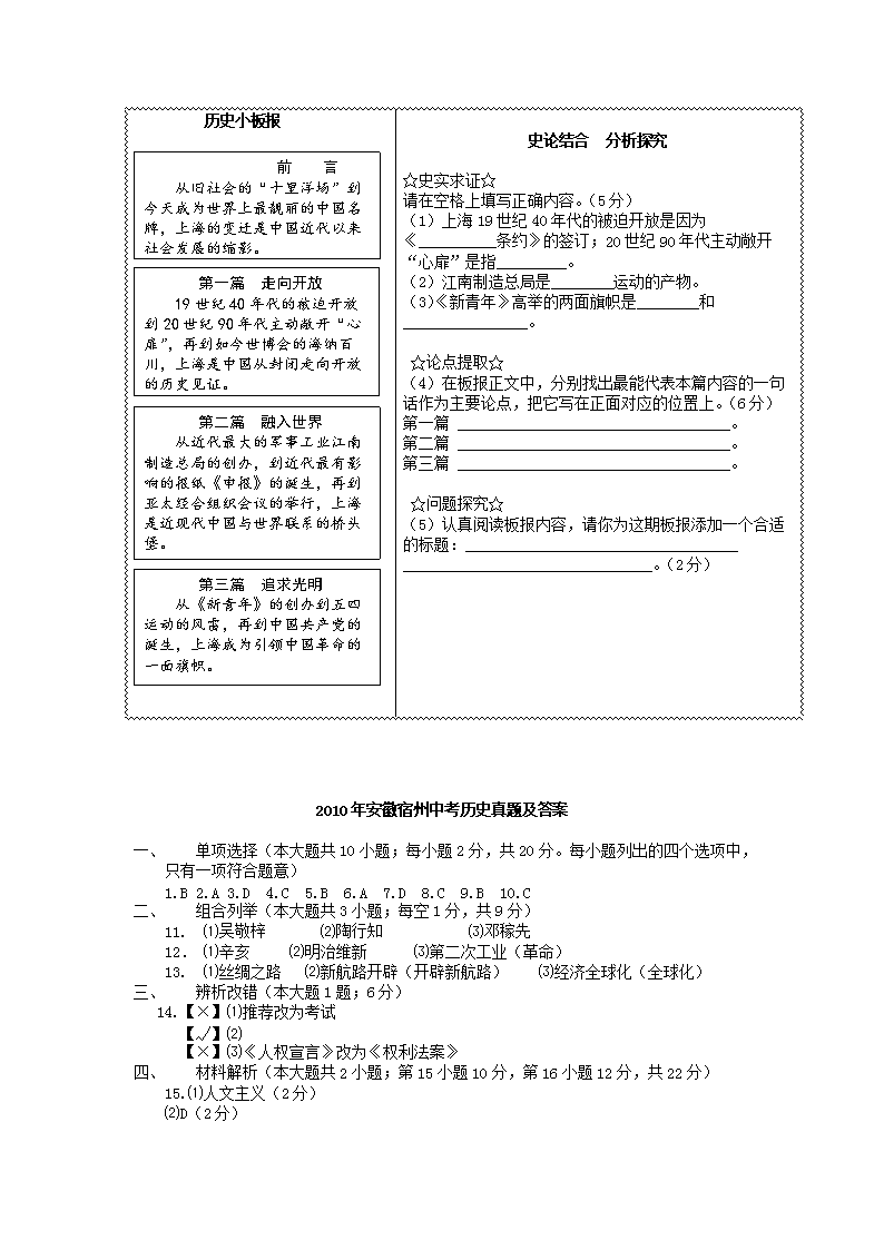 【文档名称】 2010年安徽宿州中考历史真题及答案(Word版).doc
