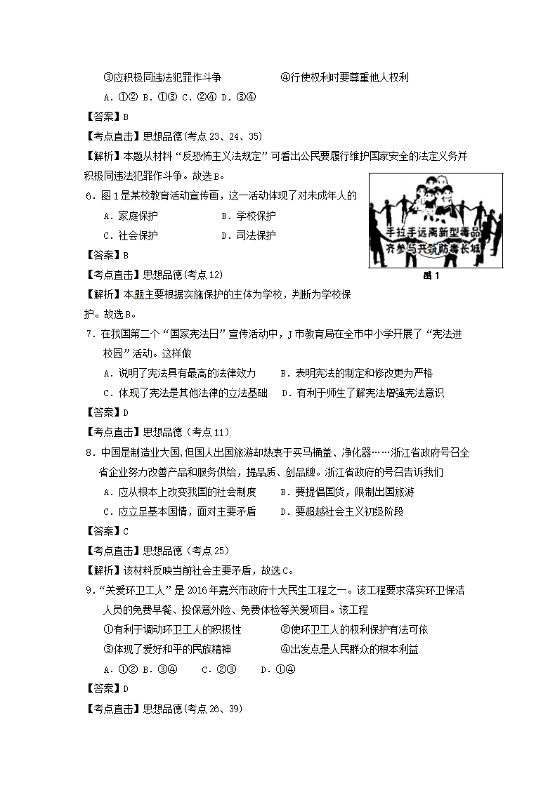 【文档名称】 2016浙江省嘉兴市中考道德与法治真题及答案(Word版).doc