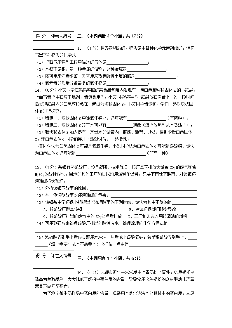 【文档名称】 2007年四川省成都市中考化学真题及答案(Word版).doc