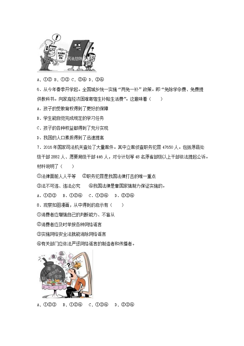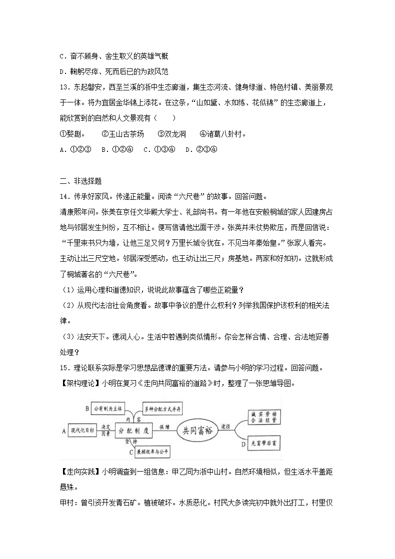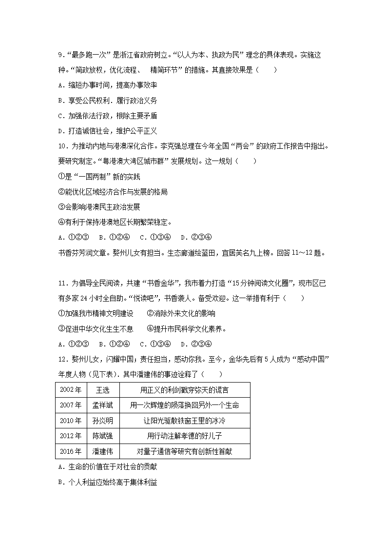 【文档名称】 2017浙江省金华市中考道德与法治真题及答案(Word版).doc