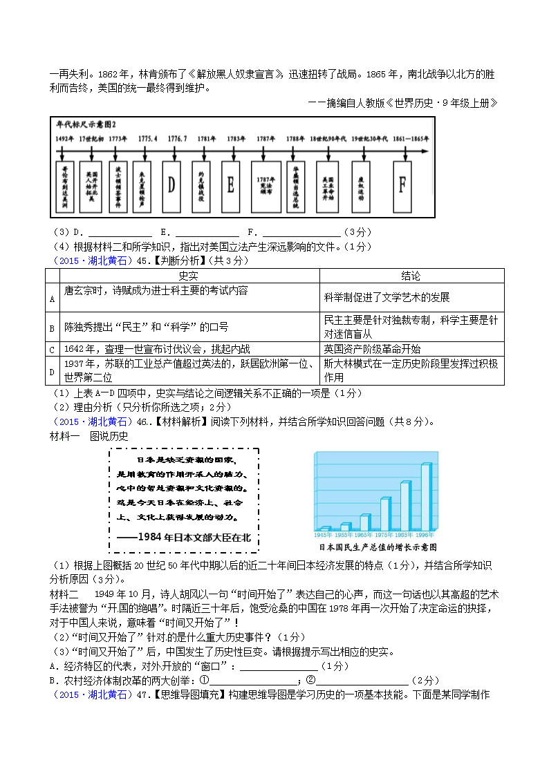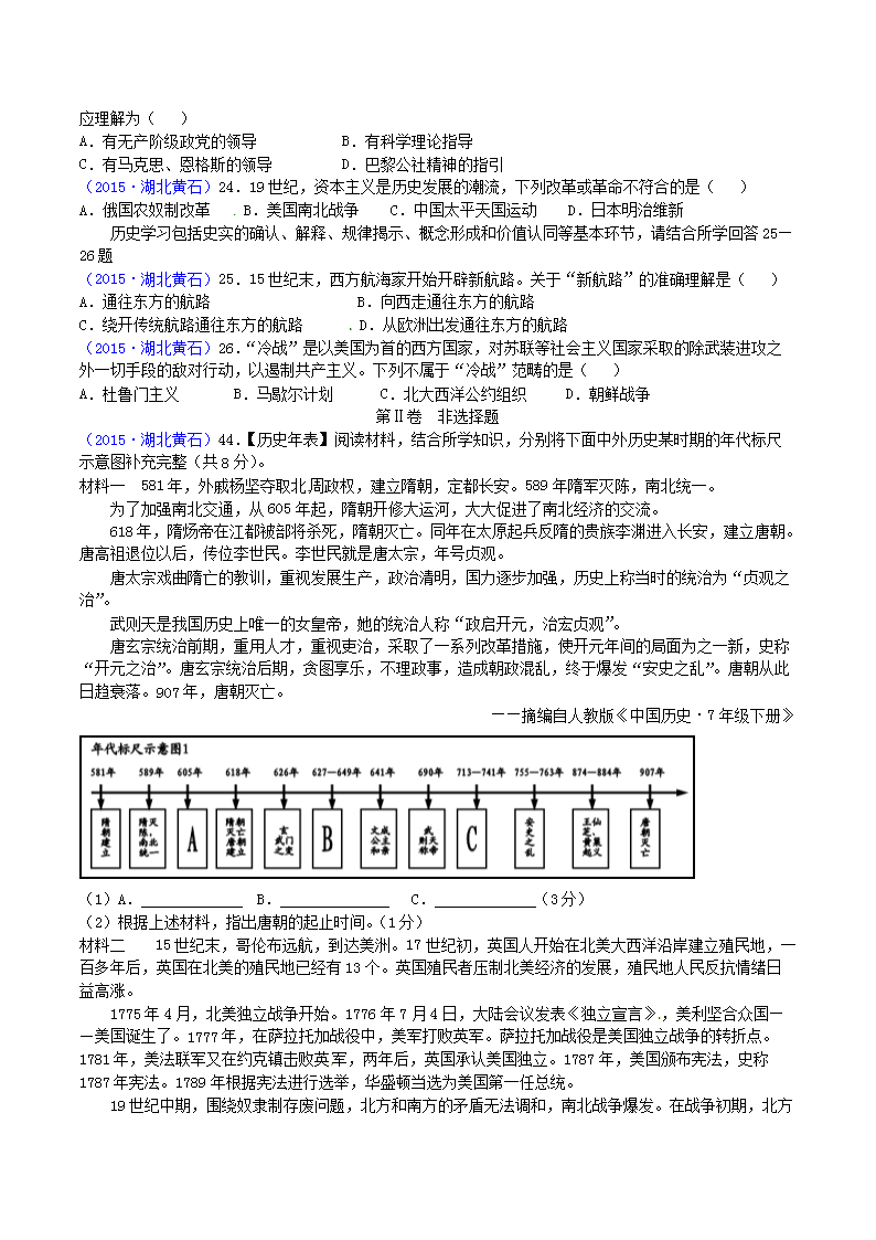 【文档名称】 2015年湖北省黄石市中考历史真题及答案(Word版).doc