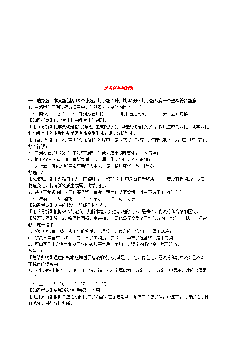 【文档预览】 无忧考网整理发布2014年重庆南岸中考化学真题及答案B卷(Word版),前五页预览如下: