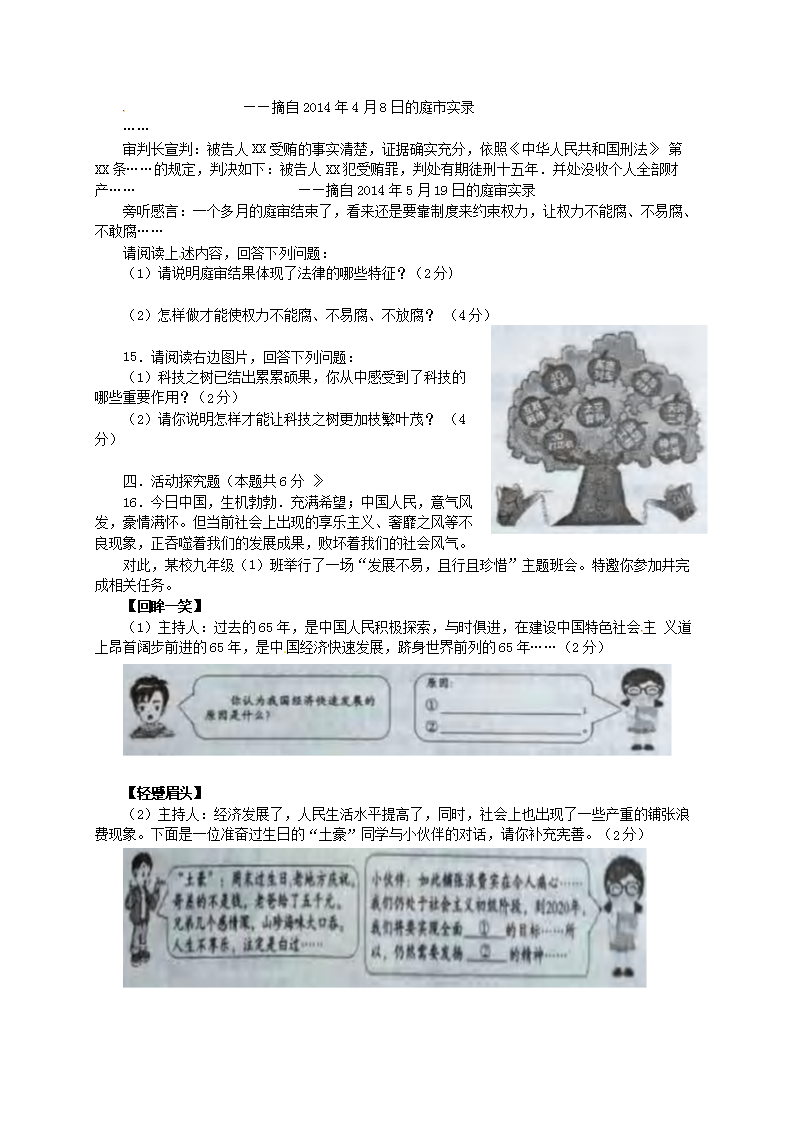【文档名称】 2014年重庆双桥中考道德与法治真题及答案B卷(Word版).doc