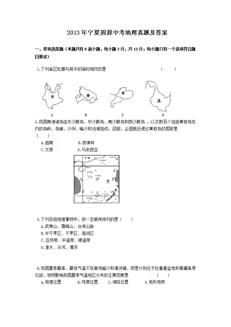 【文档预览】 无忧考网整理发布2013年宁夏固原中考地理真题及答案(Word版),前五页预览如下: